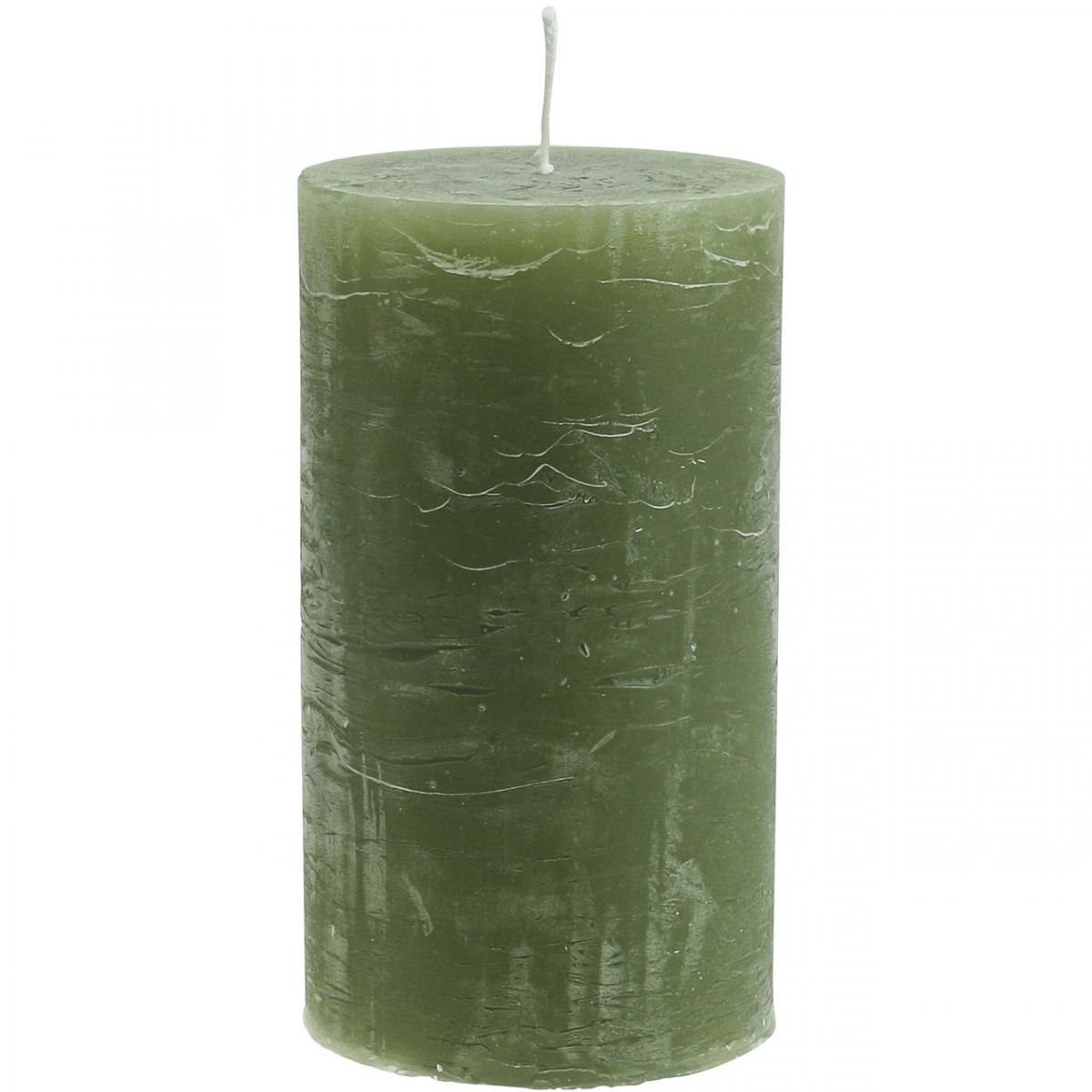 Stumpenkerzen Olivgrün 85×150mm 2 Stück – Durchgefärbte, Marmorierte Wachskerzen mit 80 Std. Brenndauer
