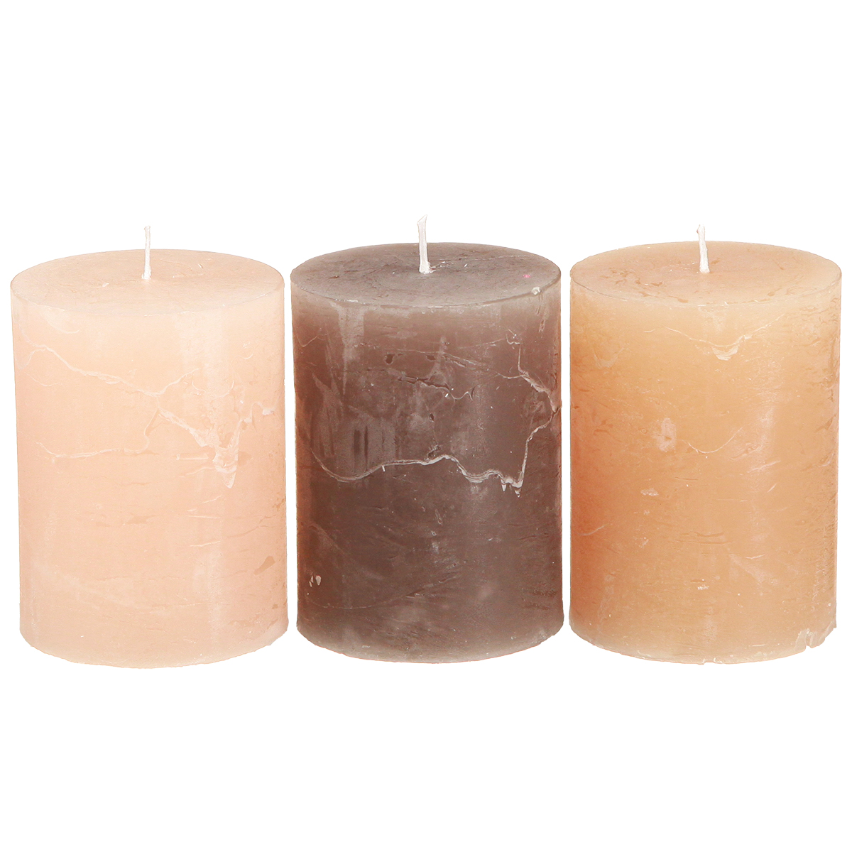 Stumpenkerzen Set 3 Farben Braun, Apricot, Sand 60x80mm 12 Stück, Rustikale Deko, Lange Brenndauer