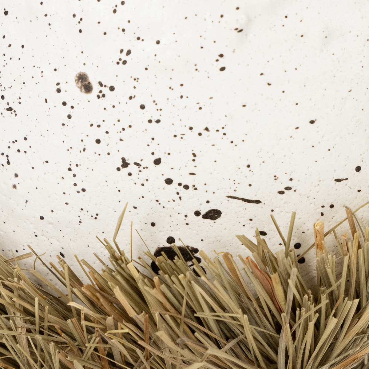 Die Kombination aus natürlichen Materialien wie Holz und Heu sowie die detailgetreu gestaltete Eioptik machen diese Schale einzigartig. Ihr harmonisches Zusammenspiel aus weißem Sprenkeldesign und rustikalen Akzenten passt besonders gut zum Landhausstil und verwandelt Ihre Dekoration in einen echten Blickfang. Ob für Fensterbänke, festliche Tische oder kreative Geschenkideen – das Osternest wird immer bewundert!