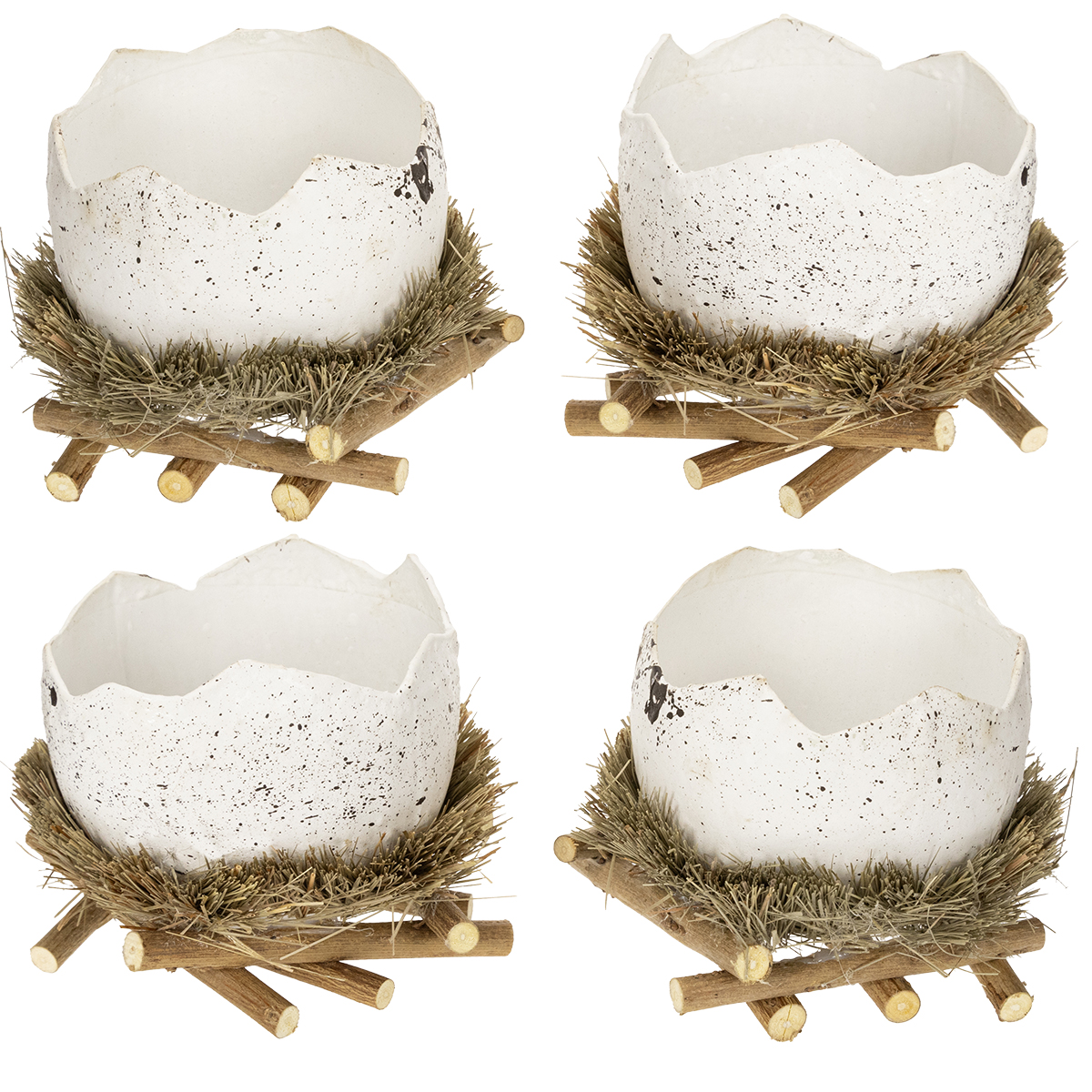 Osternest Schale 11cm aus Holz und Heu in Eioptik für Frühlings- und Osterdekoration 4er-Set