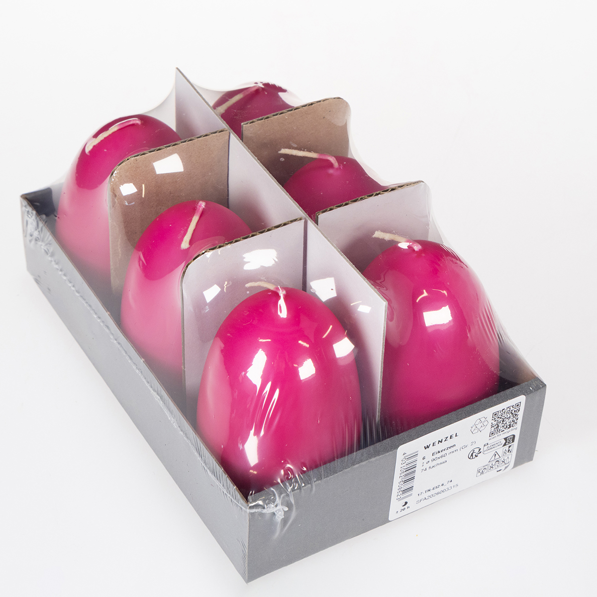 - Wie viele Kerzen befinden sich im Set? Das Set umfasst sechs Eierkerzen in Pink.