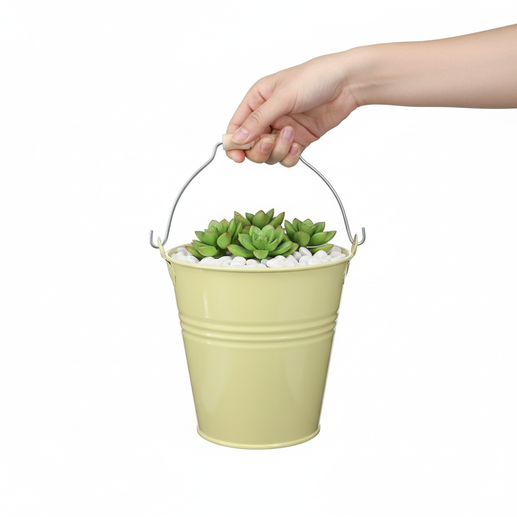 Entdecken Sie unseren charmanten Eimer aus Metall in frischem Grün-Gelb. Perfekt für Floristen und Blumengeschäfte, bringt er modernen Landhaus-Charme in jeden Raum. Ideal für künstliche Blumenarrangements und vielseitig einsetzbar.