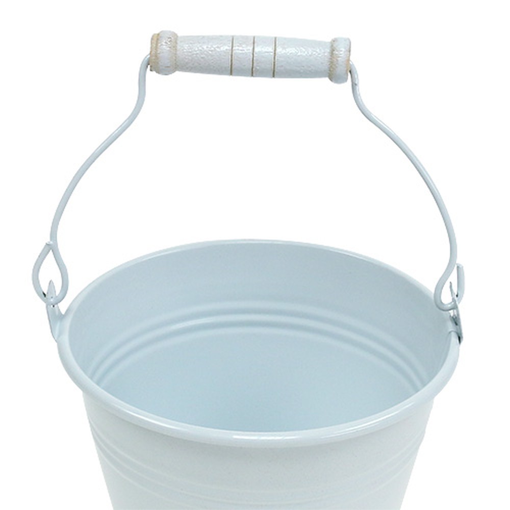 Dieser Metalleimer in Weiß kann sowohl als elegante Deko in ein Regal gestellt als auch als Übertopf verwendet werden! Der Blecheimer in Weiß besitzt sogar einen Henkel mit Holzgriff an der Oberseite und rundet dadurch das Bild perfekt ab. Sie können zum Beispiel Blumen wie eine kleine Rose, eine Tulpe oder eine Narzisse mit ihrem Topf in den Blecheimer stellen und diese dann ganz effektvoll auf ein Sideboard, eine Kommode oder einen Fenstersims stellen. Durch die weiße Farbe harmoniert der Eimer sehr schön mit einer modernen Innenausstattung und wirkt auch sehr elegant, wenn Sie einen Kaktus dort hineinstellen.