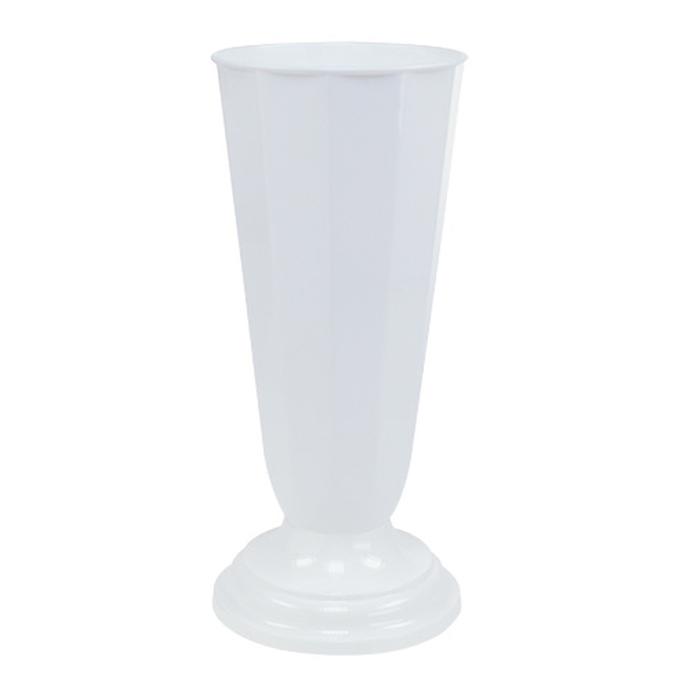 Die Einstellvase „Szwed“ in Weiß hat ohne Fuß eine Höhe von etwa 40 Zentimetern, mit eine von circa 47 Zentimetern. Der Außendurchmesser beträgt oben ungefähr 20 Zentimeter, wobei der Öffnungsdurchmesser etwa 19 Zentimeter und der Durchmesser unten circa 11 Zentimeter messen.