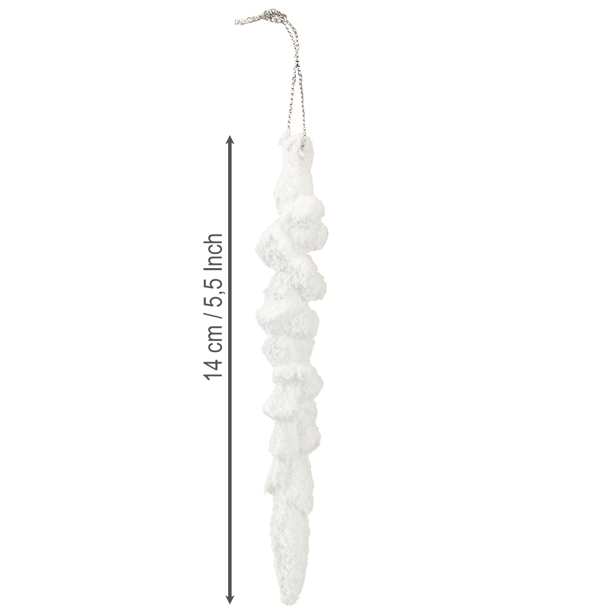 Setzen Sie glitzernde Akzente in Ihrer Weihnachtsdekoration! Mit diesem Set aus vier beschneiten Eiszapfen verzaubern Sie Christbäume, Kränze oder Fenster in eine schneeweiße Winterlandschaft. Ihre kompakte Länge von 14 cm und die detailreiche Gestaltung machen die Anhänger zum ästhetischen Highlight.