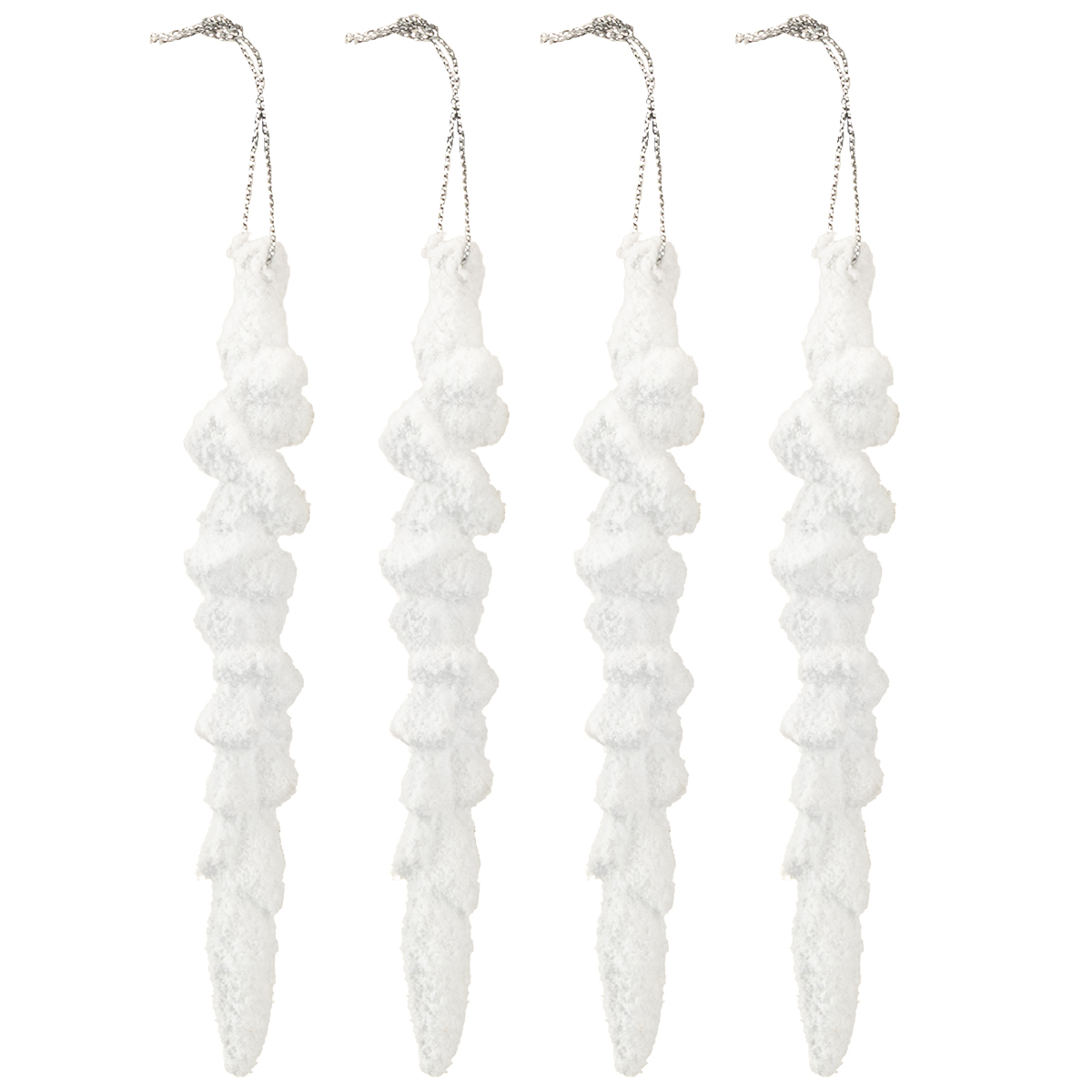 Produktname: Eiszapfen Anhänger beschneit 14cm 4er Set – Winterliche Weihnachtsdeko