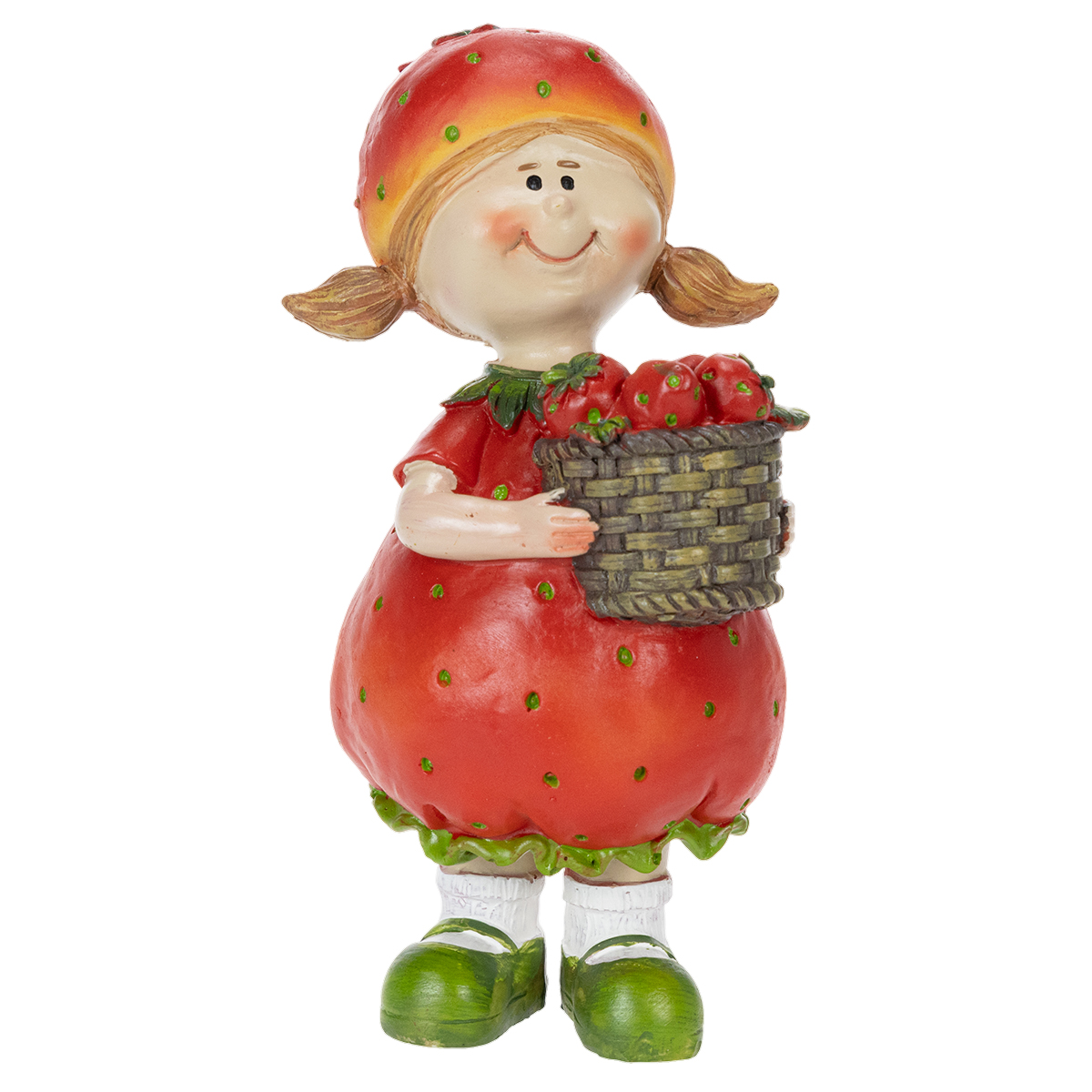 Erdbeermädchen Polyresin Dekorationsfigur 18cm für Innenräume und geschützte Außenbereiche