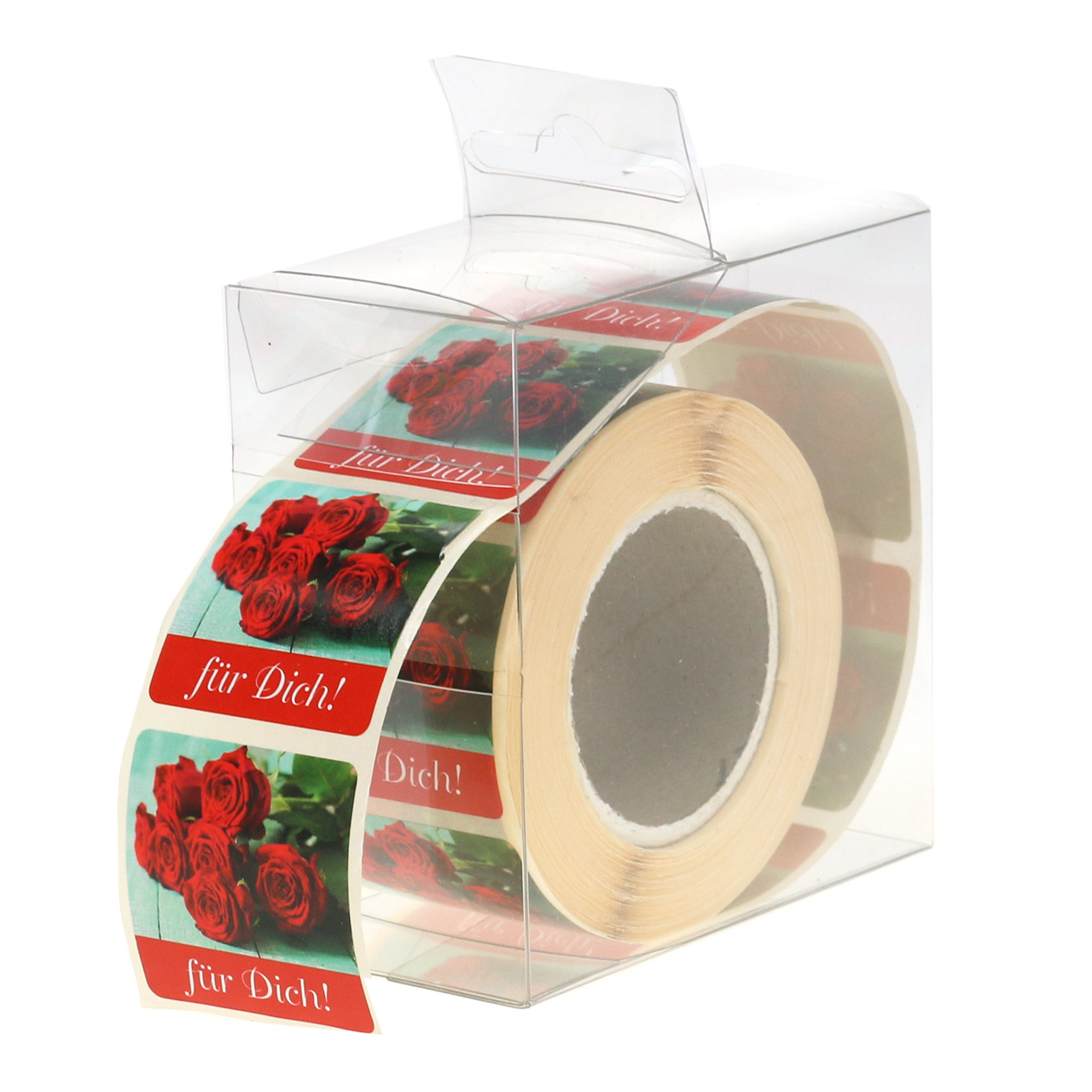 Die selbstklebenden Aufkleber mit dem Aufdruck „Für Dich“ sind zu 500 Stück auf einer Rolle aus Spezialpapier geklebt und befinden sich mit ihr in einer praktischen Spenderbox. Dadurch haben Sie die Aufkleber auch stets schnell zur Hand, wenn Sie sie in der Hektik mal benötigen. Die Etiketten haben in etwa die Maße von 3,5 mal 3,5 Zentimeter.