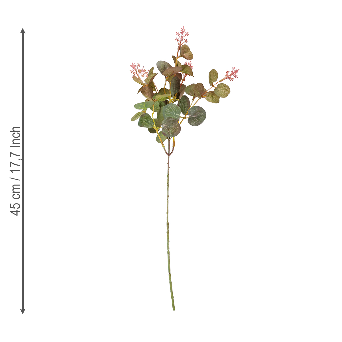 Entdecken Sie unsere hochwertigen künstlichen Eukalyptuszweige mit rosa Blüten und verwirklichen Sie kreative Dekorationsideen. Die naturgetreue Ausführung dieser Kunstpflanzen bringt einen Hauch von Natur direkt in Ihre Projekte und Räume.