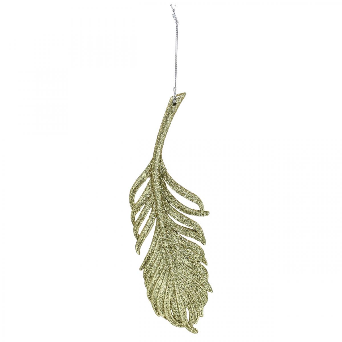 Produktname: Deko-Federn, Baumschmuck mit Glitter, Adventsdeko, Federn zum Hängen Golden L22cm 12St