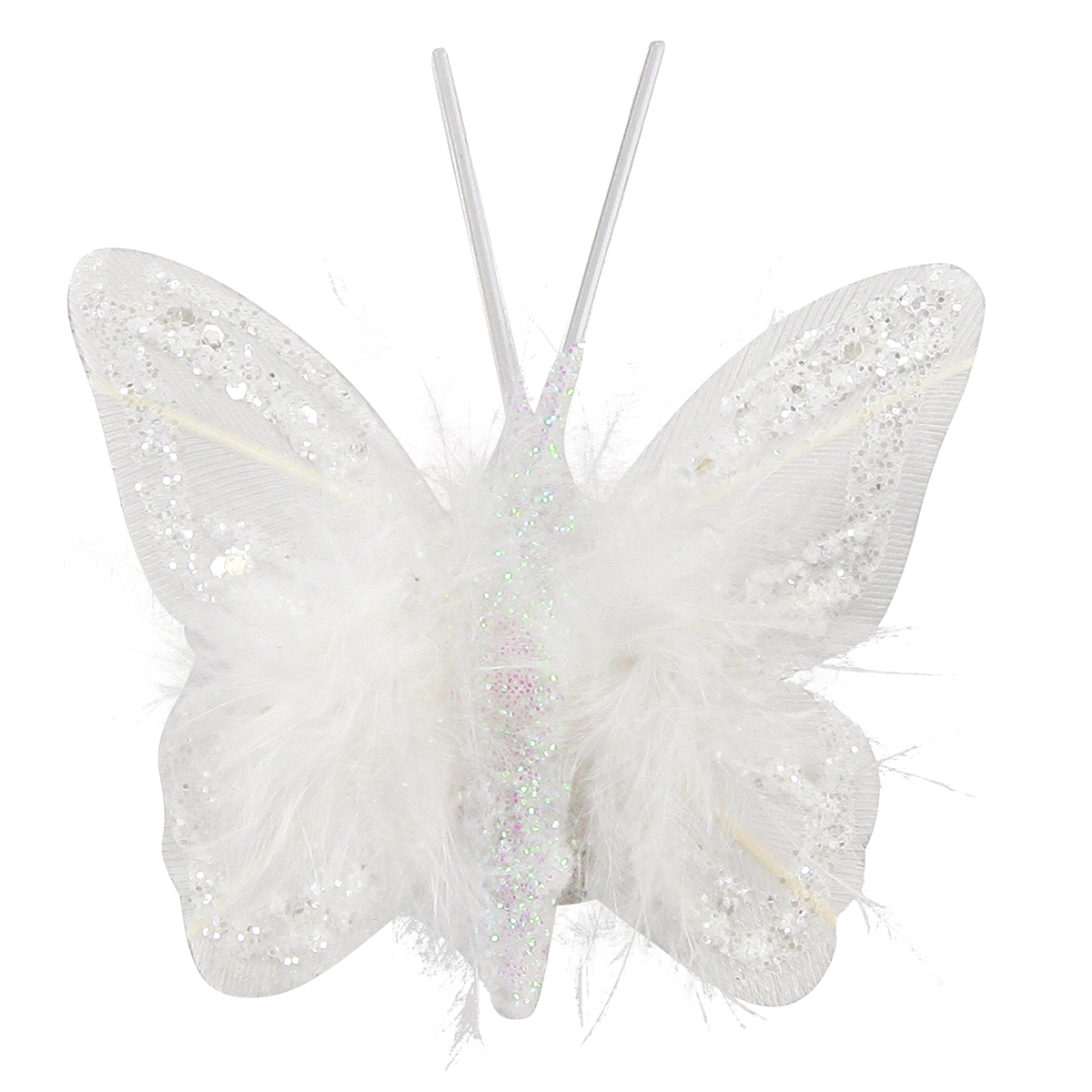 Produktname: Federschmetterlinge am Clip Weiß Glitzer 5x4,5cm 4 St