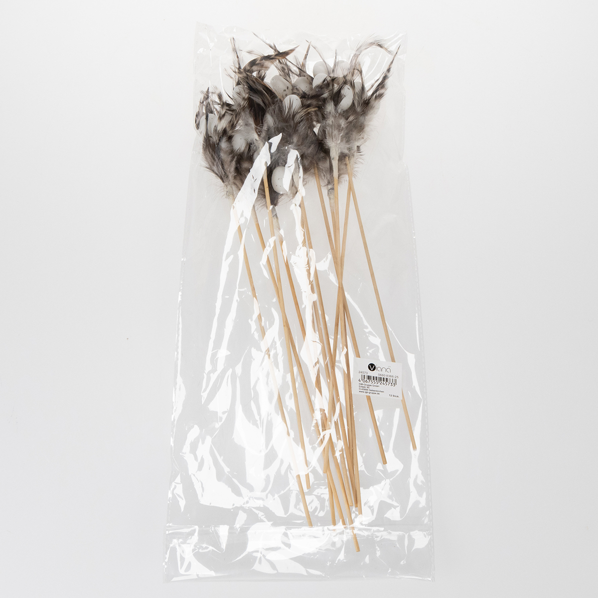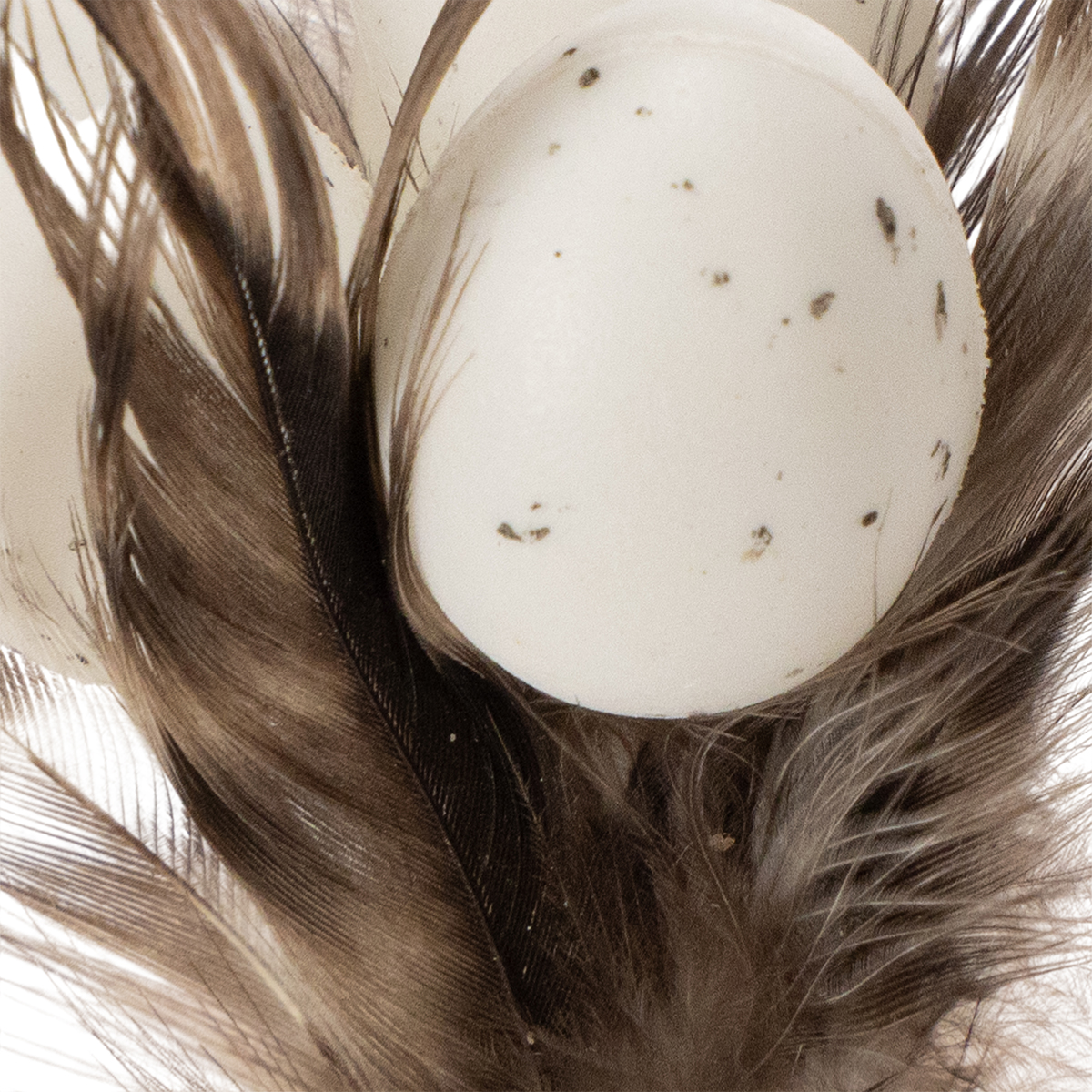 - Material: Naturfedern, Kunststoffeier, Holzstab