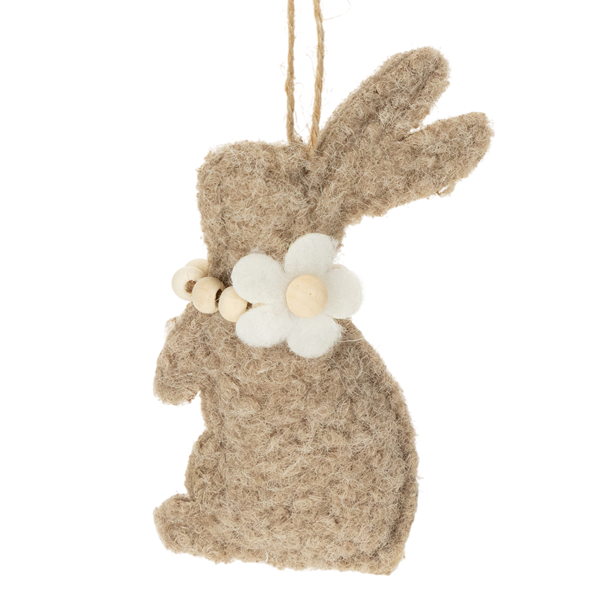 Die handgefertigten Osterhasen bestehen aus hochwertigem weichem Filz und sind in sanften Beige- und Cremetönen gehalten. Mit ihren liebevollen Details, wie der filigranen Blüte am Hals, fügen sie sich wunderbar in den skandinavischen Stil ein. Typische Materialien wie helle Hölzer und Stoffe, kombiniert mit dezenten Farben und minimalistischem Design, unterstreichen die Wirkung dieser Dekoration. Ideal lassen sich die Hasen mit zarten Frühjahrszweigen, künstlichen Blüten oder farbenfrohen Eiern kombinieren.