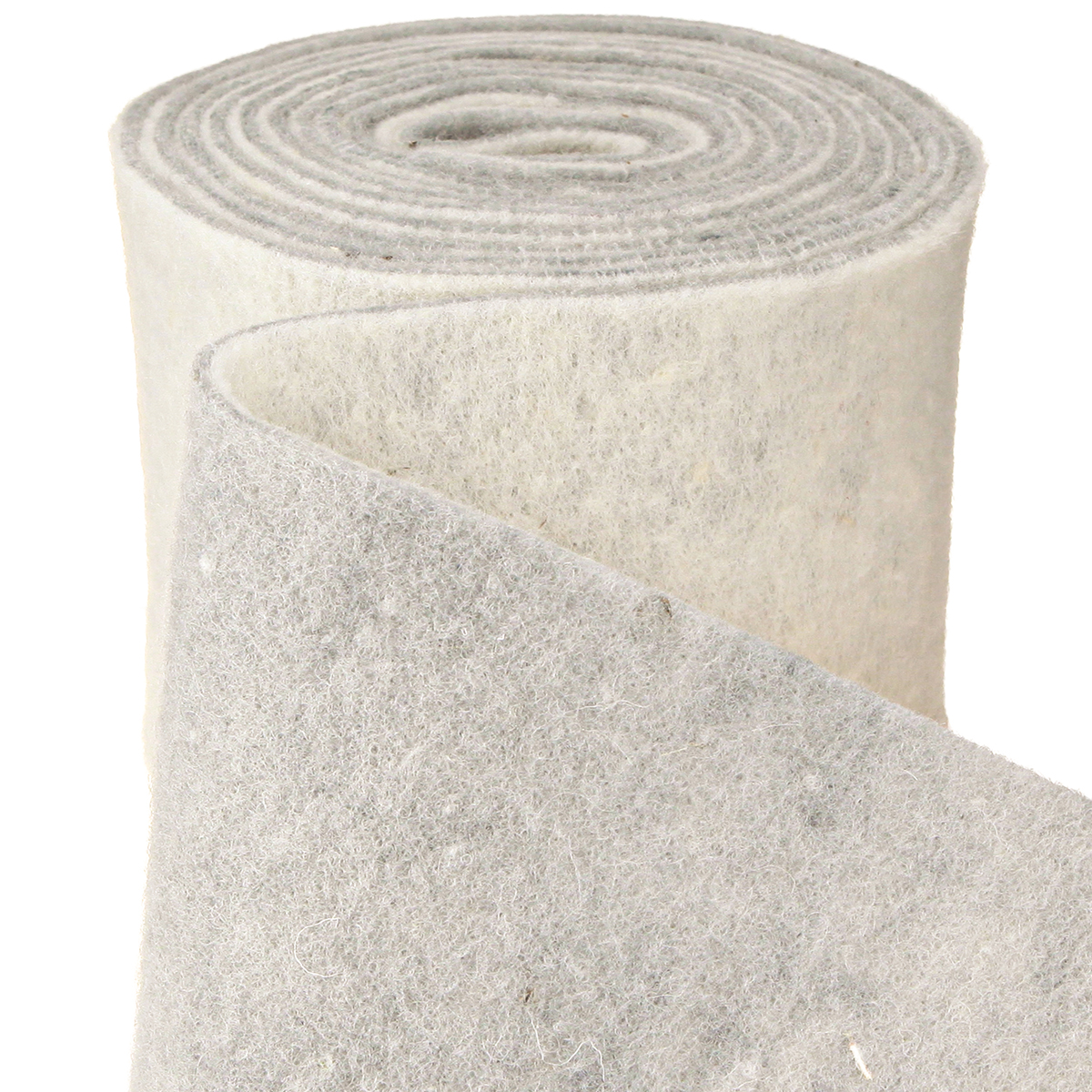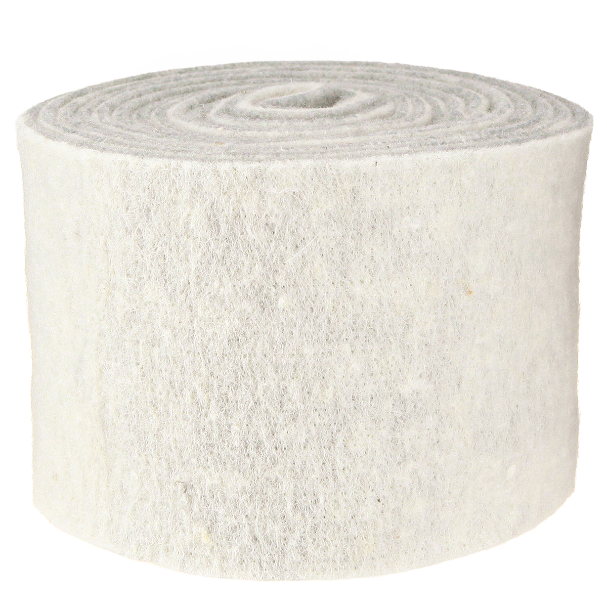 Die Länge des zweifarbigen Filzbands in Grau und Weiß beträgt ungefähr 5 Meter; bei der Breite sind es circa 15 Zentimeter. Das Dekoband besteht zu 100% aus Wolle.