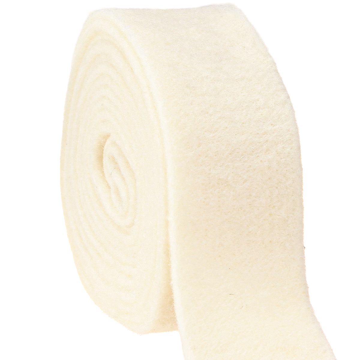 Das weiße Filzband mit einer Länge von ungefähr 5 Metern und einer Breite von ungefähr 7,5 Zentmetern wird ihnen zu einer Rolle gewickelt nachhause geliefert.