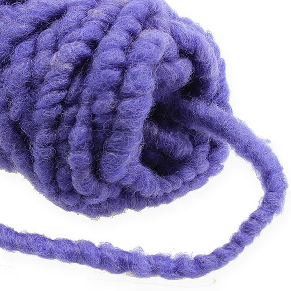 Die Filzkordel Flausch Mirabell in Violett hat eine Länge von ungefähr 25 Metern und einen Durchmesser von etwa 1,5 Zentimetern.