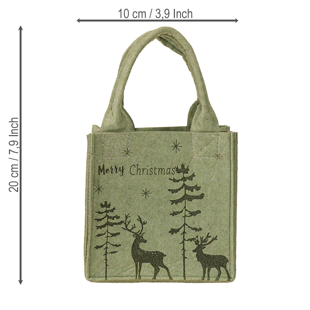 Filztasche Grün Merry Christmas 15x10cm mit Henkeln für Geschenke und Dekoration