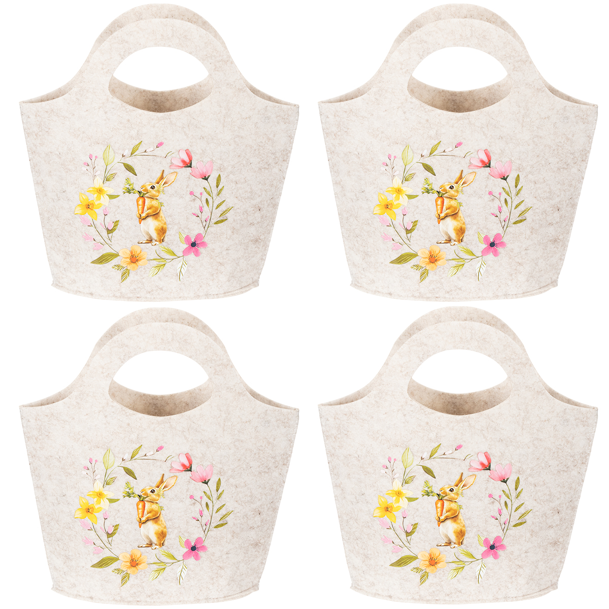 Filztasche mit Osterhasen-Motiv und Blumen für Frühling und Ostern 27 cm 4er-Set
