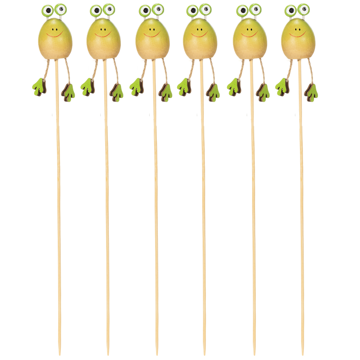 Produktname: Frosch Pflanzenstecker Deko Holz 34cm Grün 6er Set für Frühling und Sommer