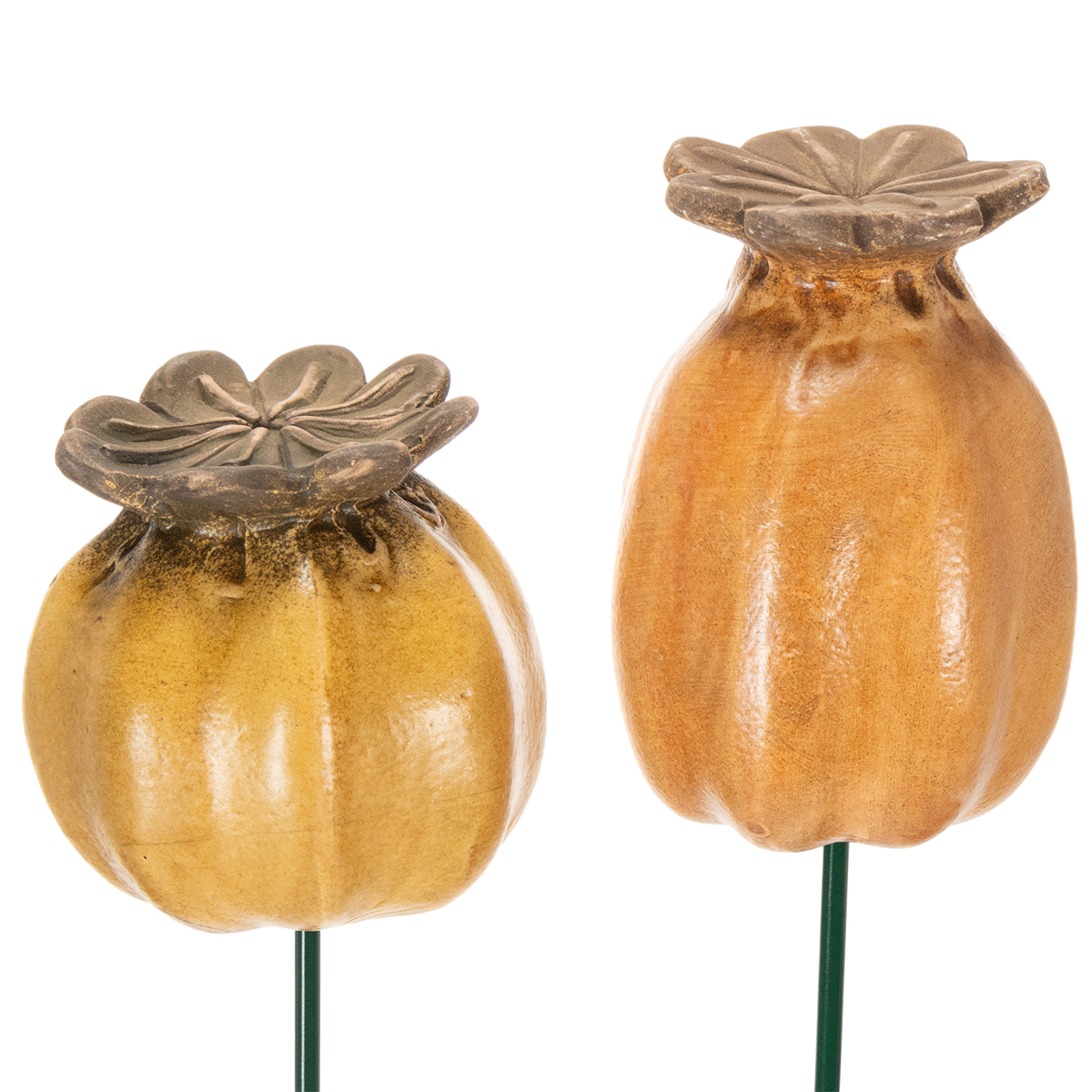 Produktname: Gartenstecker Mohnkapsel Set 2 Stück Keramik 60 cm Höhe für Beet und Balkon