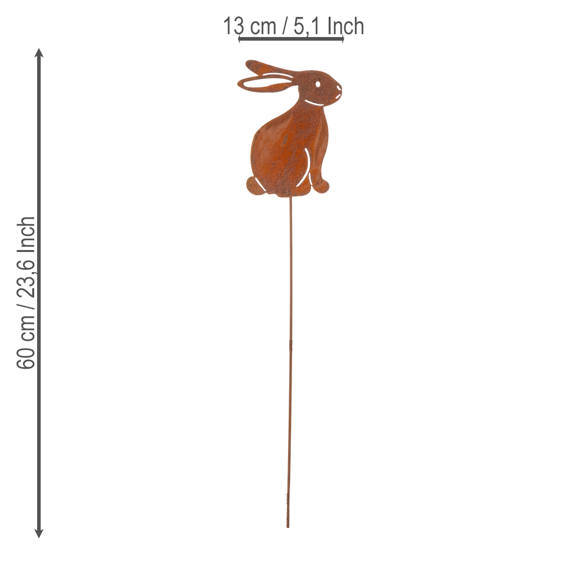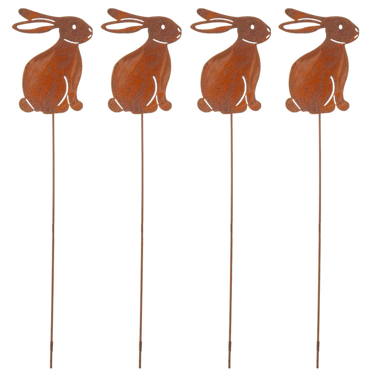 Gartenstecker Hase aus Metall mit Rostoptik 4er-Set 60 cm zur Osterdekoration