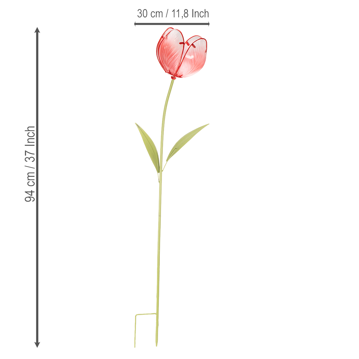 Gartenstecker Tulpe aus Glas in Rot – Dekoration für Garten und Balkon, 94 cm