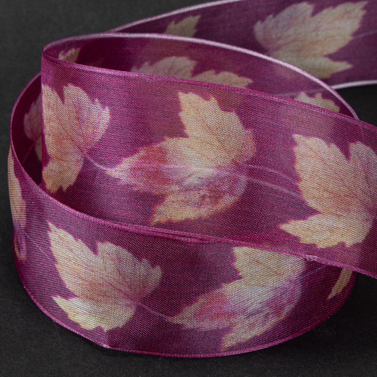 Produktname: Geschenkband Ahornblätter Lila Band Herbst 40mm 15m