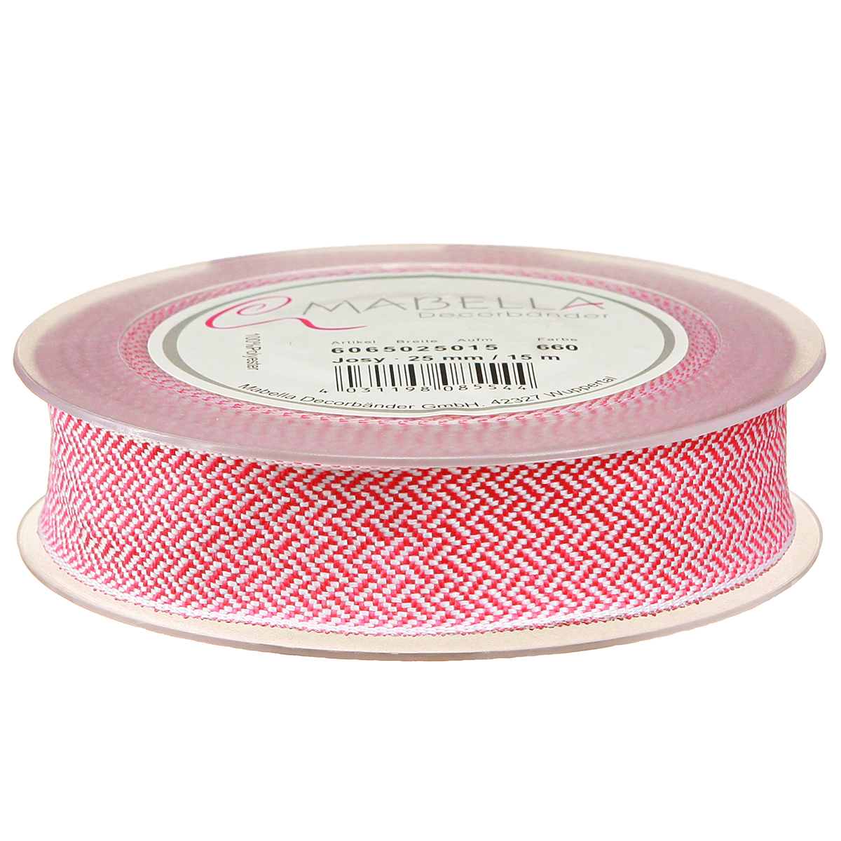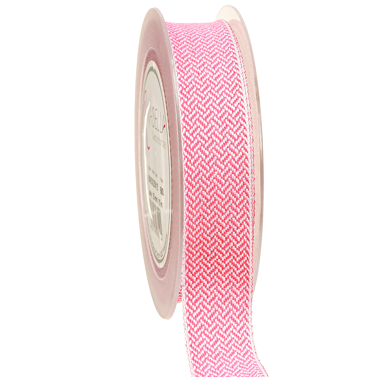 Produktname: Geschenkband Fischgrätmuster Pink Weiß 25mm 15m für Floristen & Dekorateure