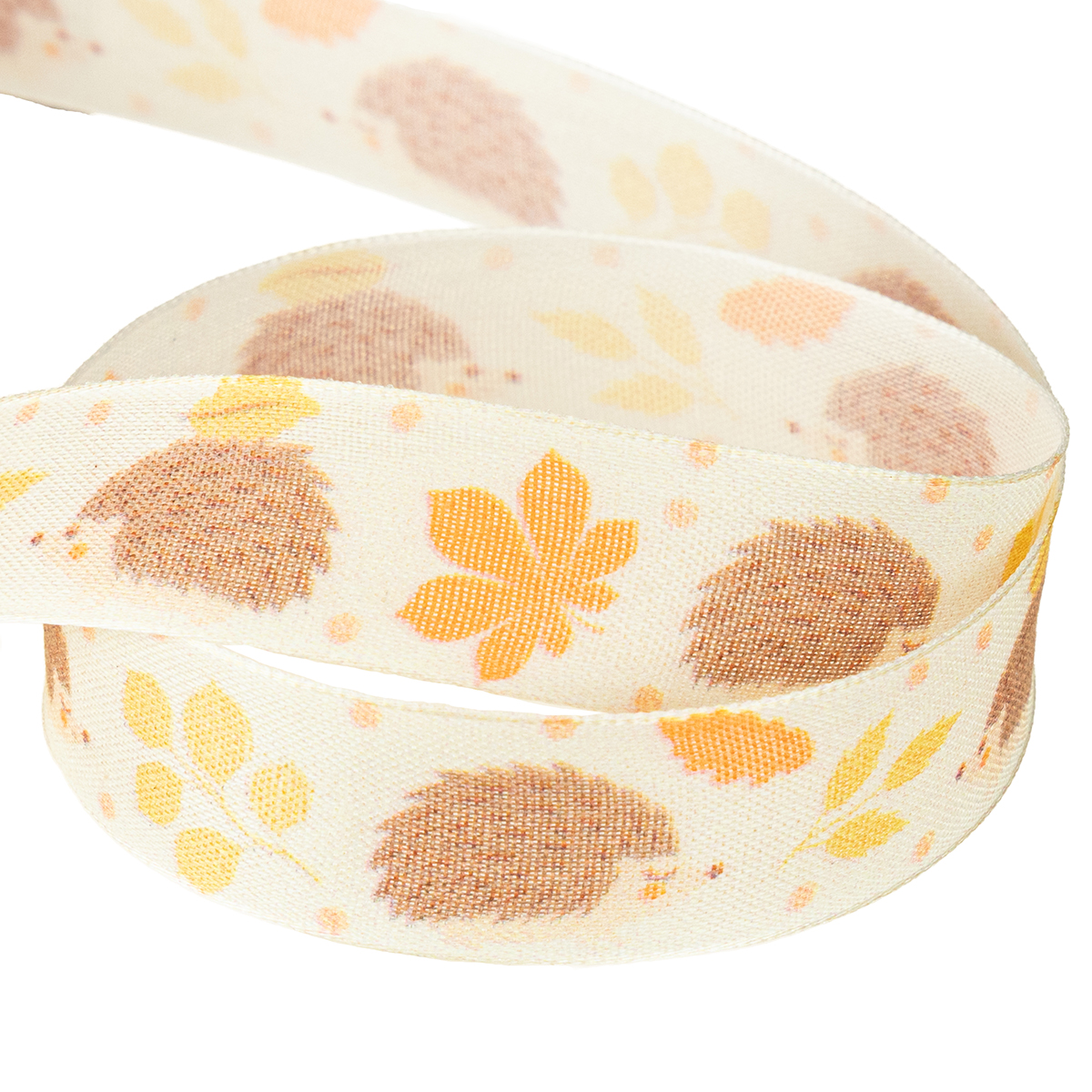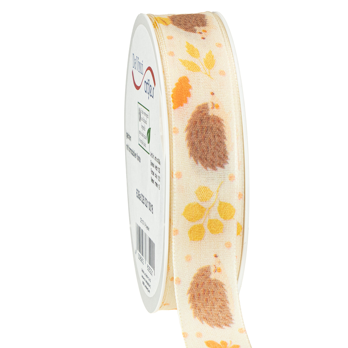 Produktname: Geschenkband Webkante Band Herbst Igel 15mm 18m