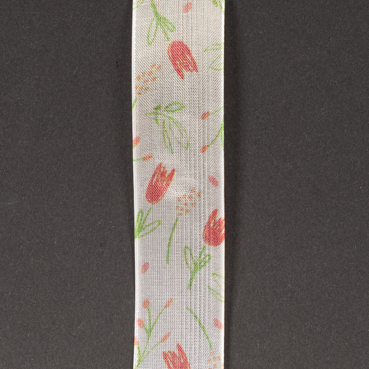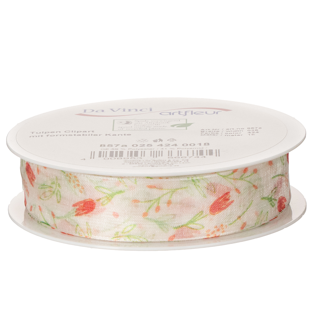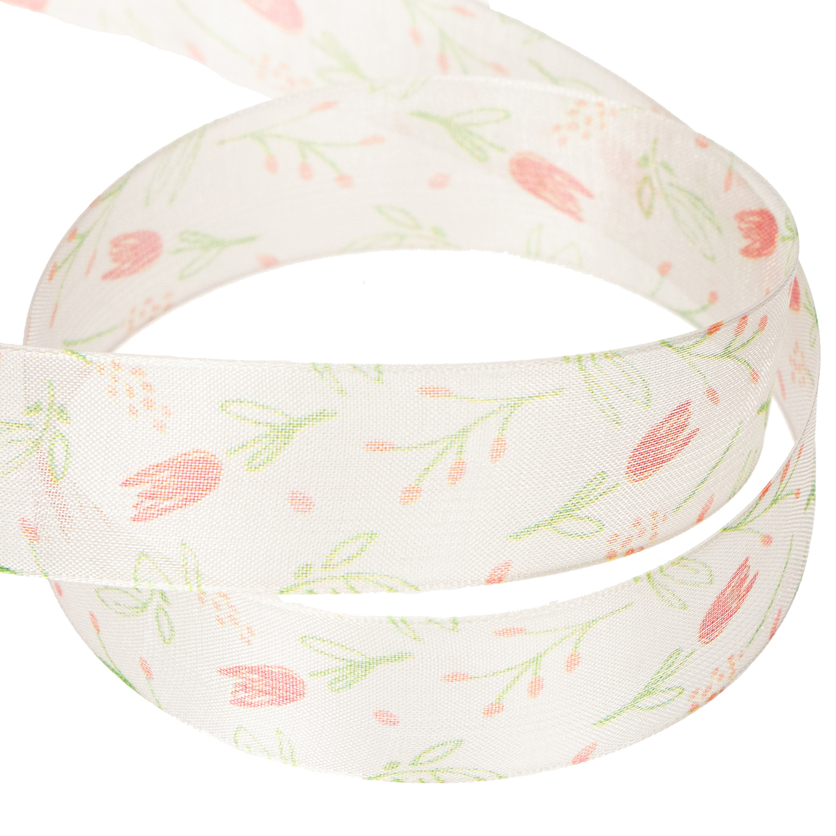 Produktname: Geschenkband mit Tulpenmuster 2,5 cm x 18 m für Frühlingsdeko und kreatives Verpacken