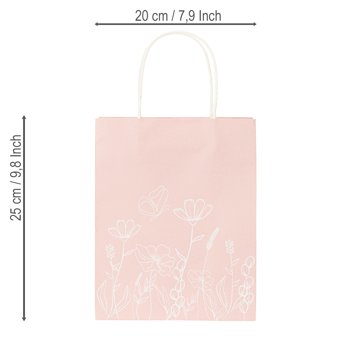 Produktname: Geschenktüten aus Papier mit Blumendesign und Tragegriff 20x6x25cm – 6 Stück