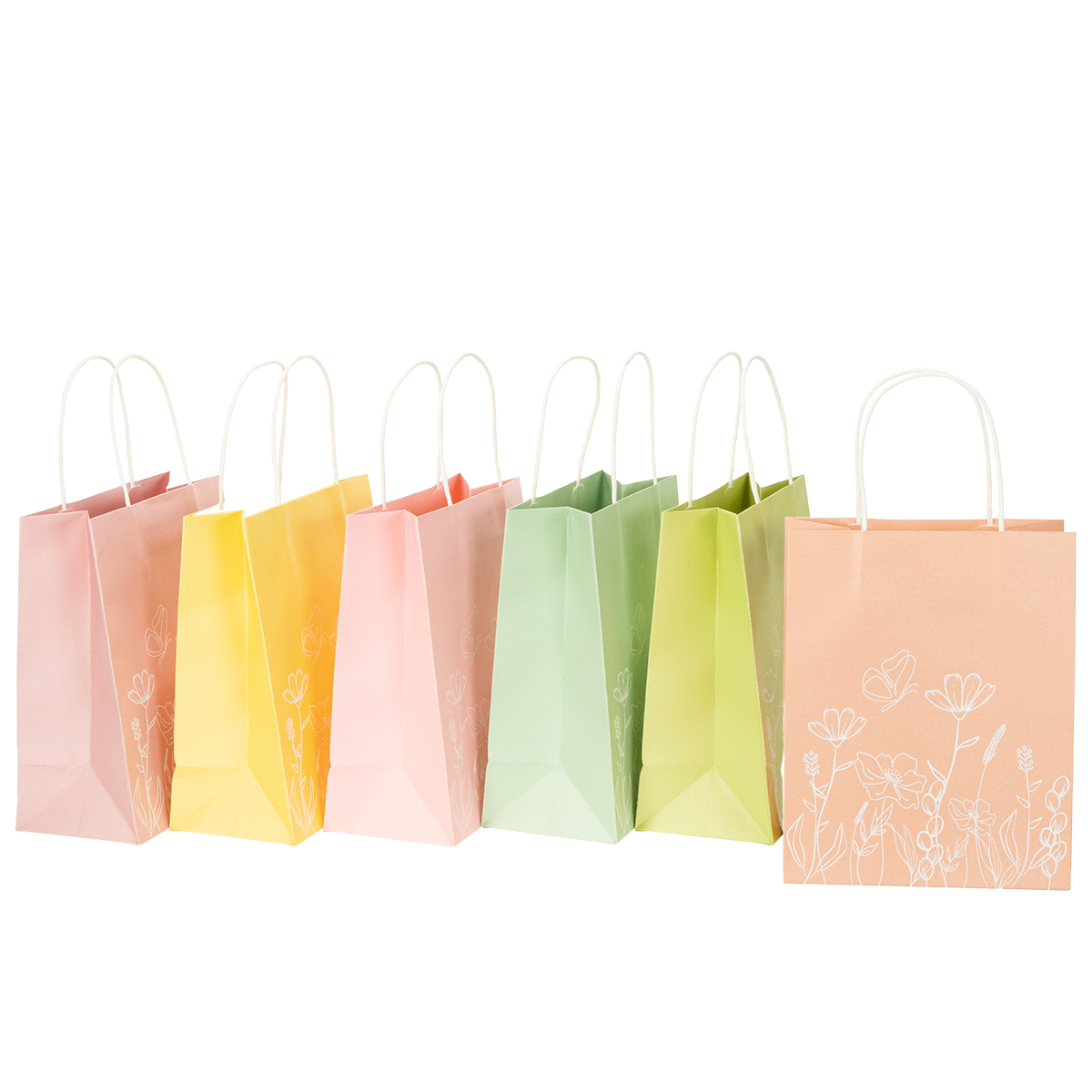 Diese Papiergeschenktüten sind nicht nur optisch ein Highlight, sondern punkten auch durch ihre Vielseitigkeit und umweltfreundliche Verarbeitung. Mit einer Größe von 20 x 6 x 25 cm bieten sie ausreichend Platz für kleinere Präsente wie Accessoires, DIY-Kreationen oder Souvenirs. Ihre dezenten Blumenmuster und die fröhlichen Farben – Gelb, Grün, Rosa und Orange – fügen sich hervorragend in Eventdekorationen ein.