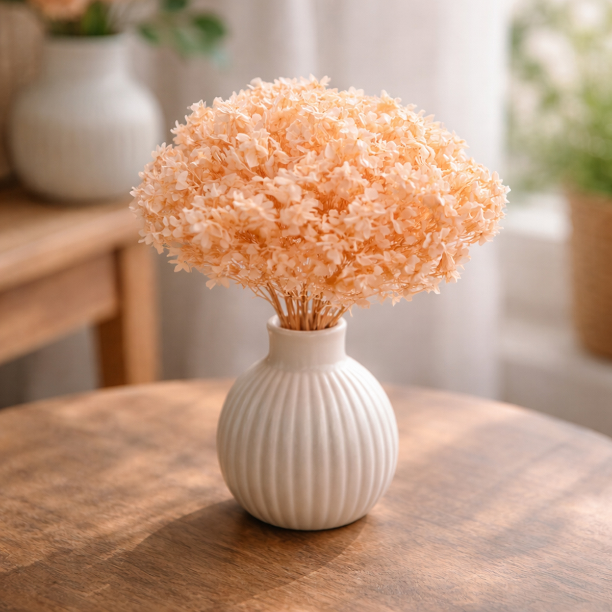 Hortensien-Trockenblumensträuße eignen sich ideal für dekorative Arrangements, bei denen eine natürliche Optik gewünscht ist. Sie sind gegenüber künstlichen Dekorationen aus Kunststoff oder Glas besonders nachhaltig und bieten eine angenehm weiche Erscheinung. Im Gegensatz zu Glas weisen Trockenblumen kein Risiko von Zerbrechen auf, während sie anders als Kunststoff-Produkte keinerlei künstliche Oberflächenästhetik haben. Allerdings sind sie empfindlicher gegen Feuchtigkeit und UV-Strahlung.