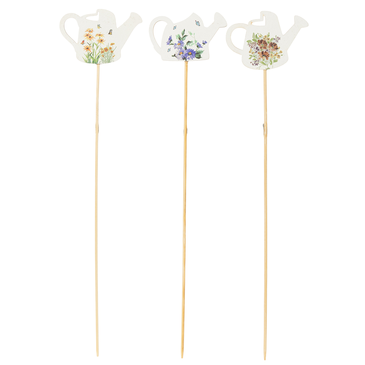 Gießkannen-Dekostecker aus Holz 34 cm für Blumensträuße und Balkon-Dekoration, 8 Stück