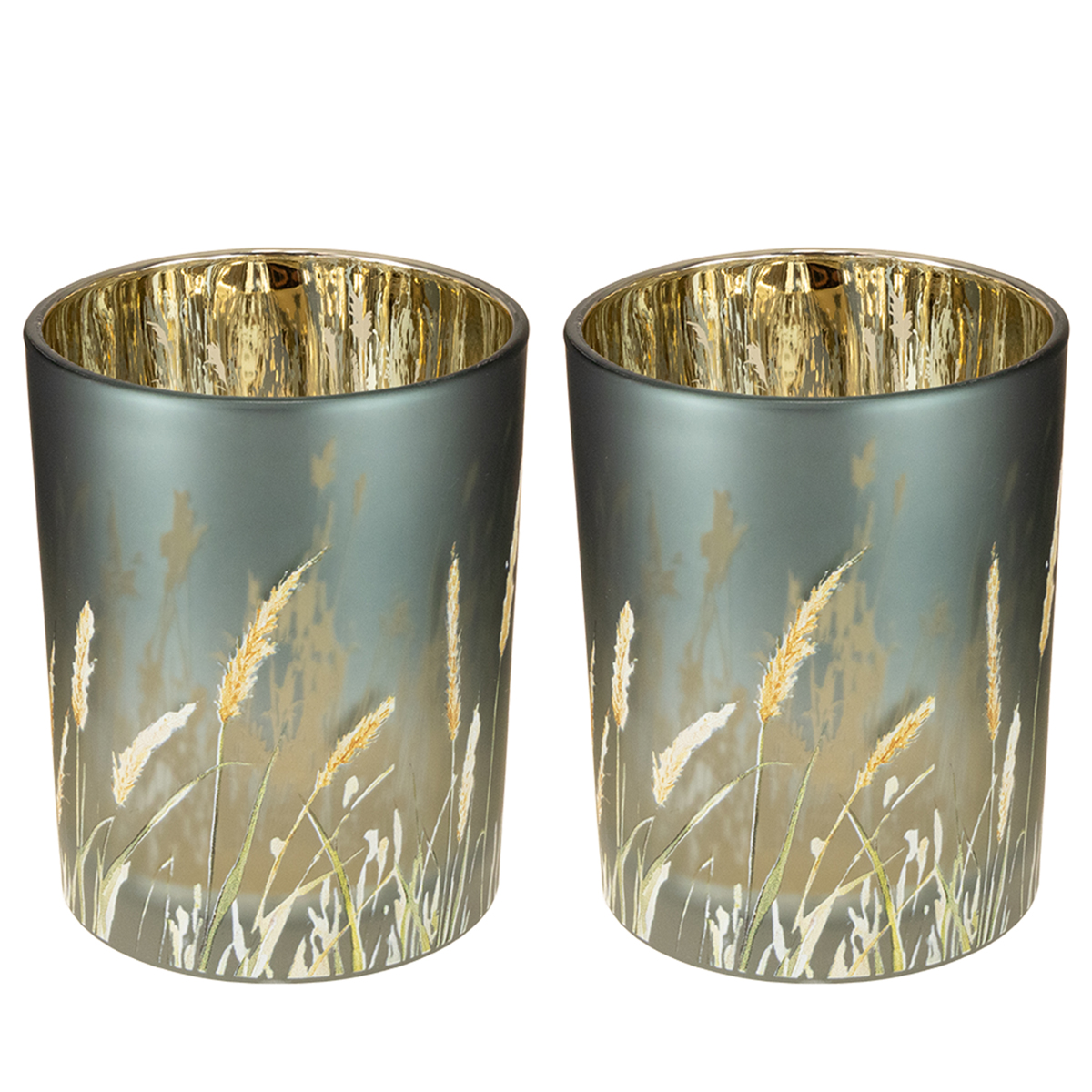 Glas Windlicht mit Gräsermotiv Blau Gold 12,5 cm 2er-Set für stimmungsvolle Deko