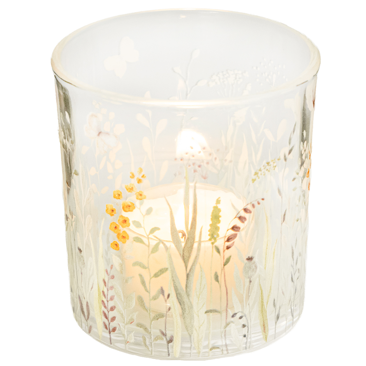 Glas-Windlicht mit Schmetterlings- und Blumenmotiv für stilvolle Dekoration 12,5cm 4er-Set