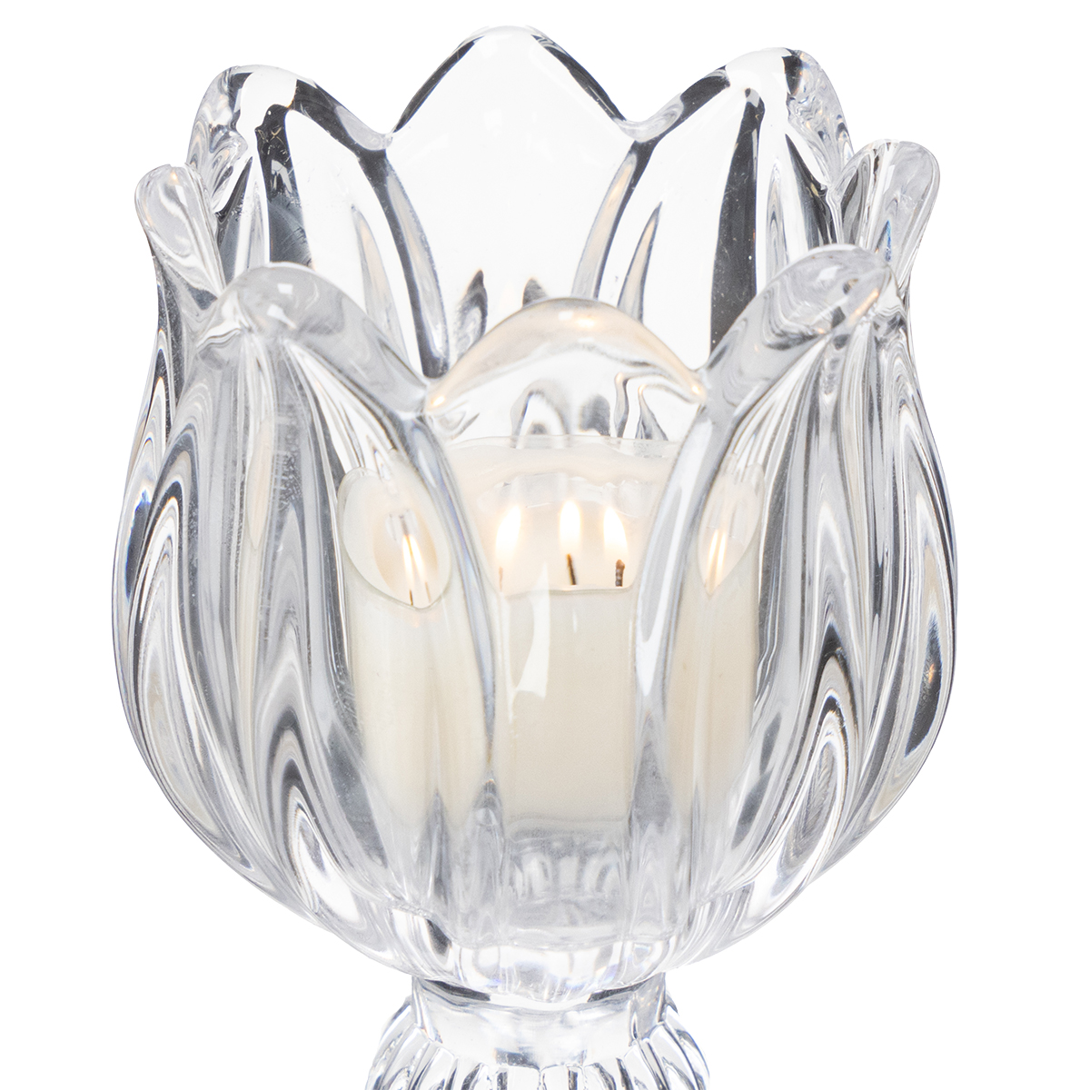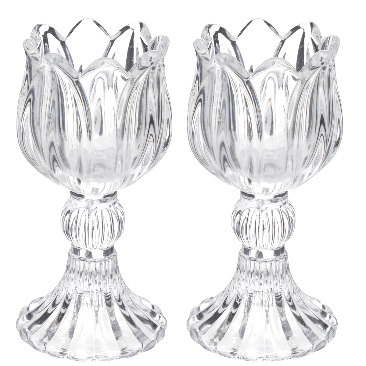 Glaskerzenhalter Blumenform 14 cm Transparent – Set mit 2 Stück für stilvolle Tischdekoration