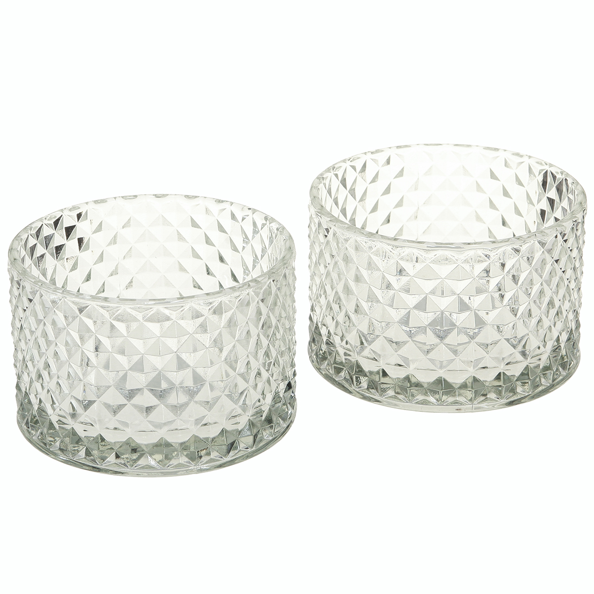 Glasschale Teelichthalter Klar Retro Rautenmuster Ø10,5cm 2St