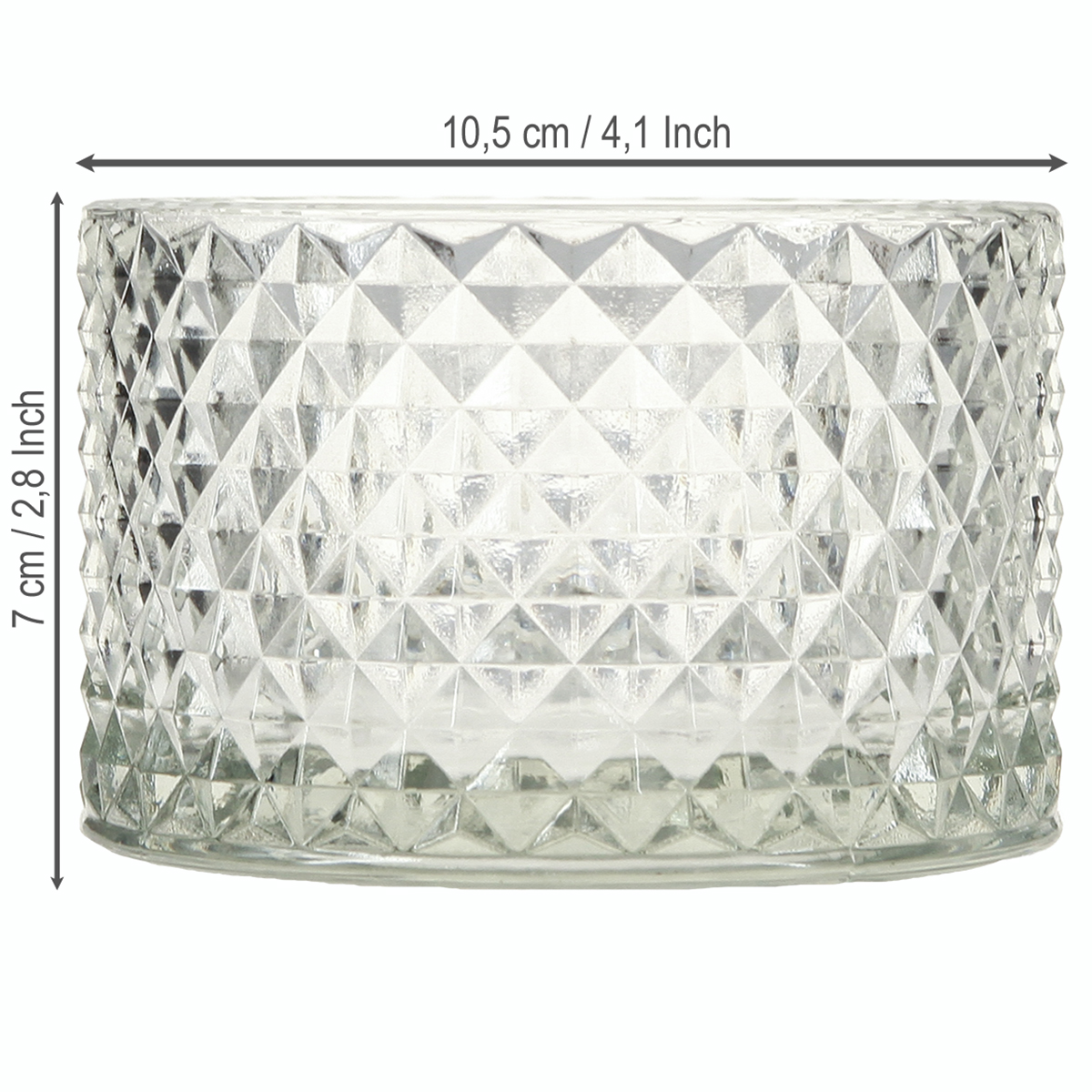 Verleihen Sie Ihrer Tischdeko einen nostalgischen Charme mit unserer Glas-Teelichthalter im Retro-Rautenmuster. Diese stilvolle Glasschale ist ein Must-have für Floristen, die ihren Kunden ein einzigartiges Erlebnis bieten möchten. Aus klarem Glas gefertigt, sorgt die Glasschale für sanftes Licht und eine elegante Atmosphäre.