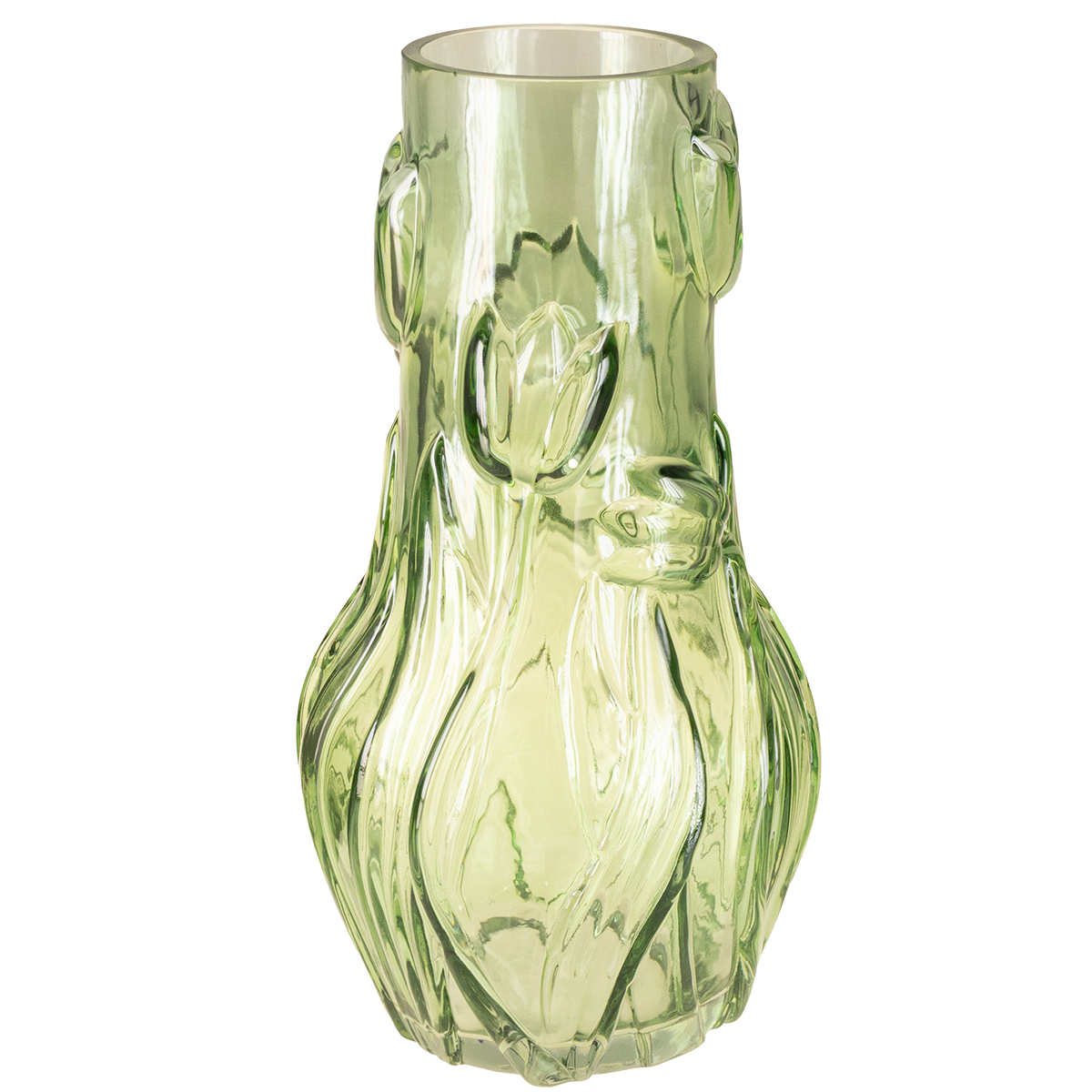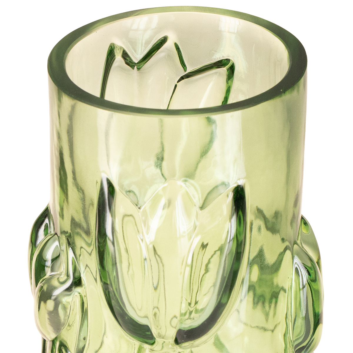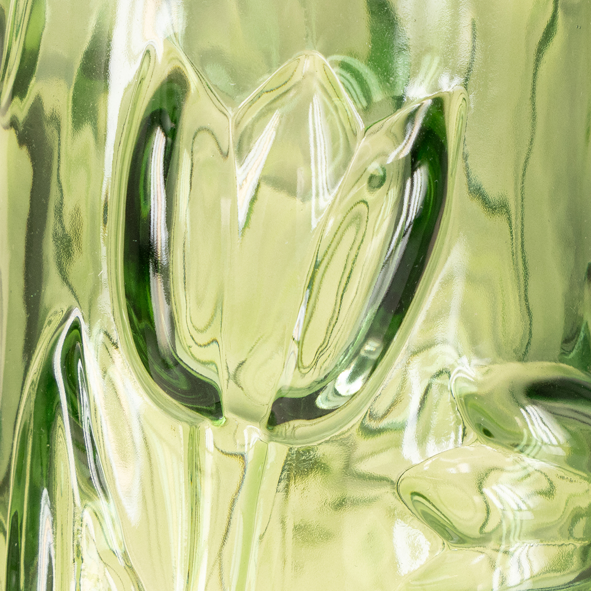 Glasvase Grün 30cm mit Geprägtem Tulpenmuster – Dekorative Eleganz für Floristik und Dekoration