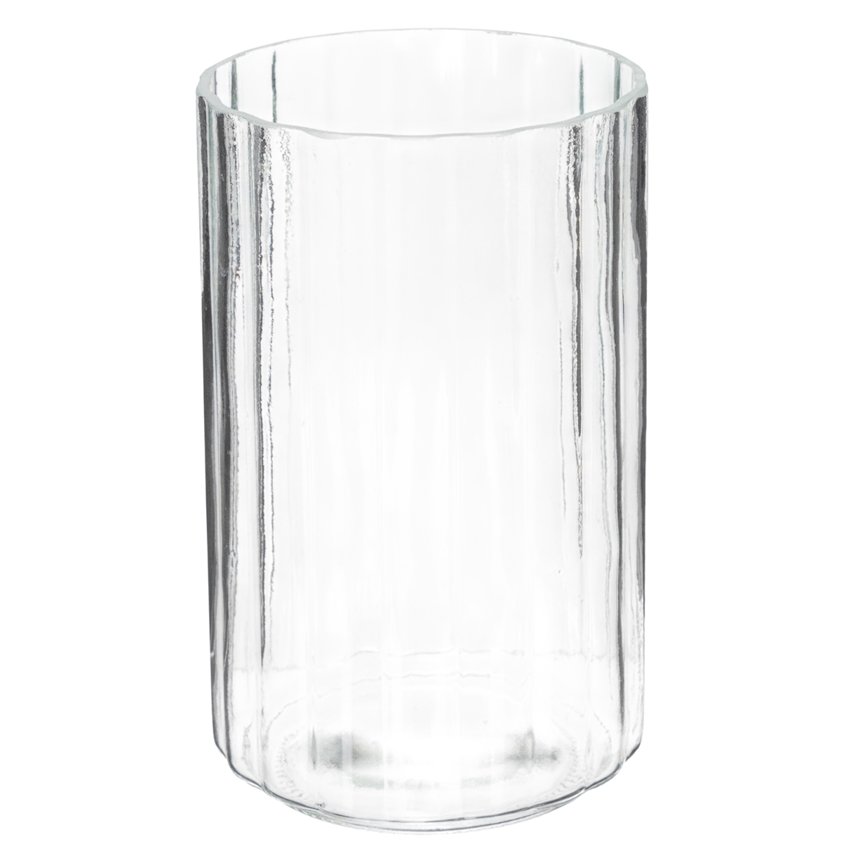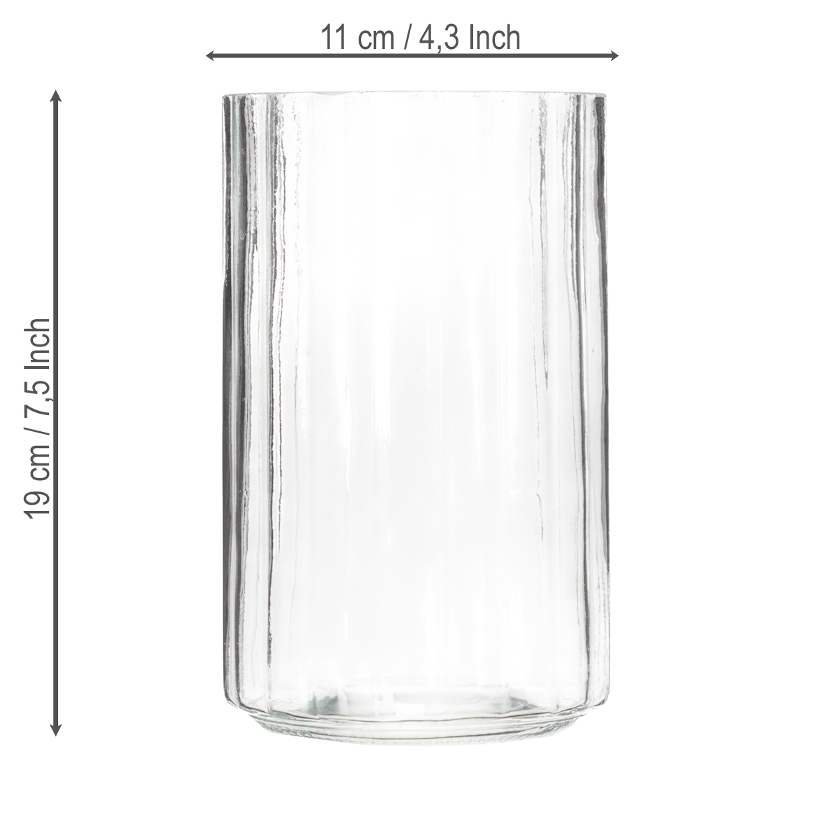 Produktname: Glasvase mit Streifenstruktur transparent zylindrisch 19cm