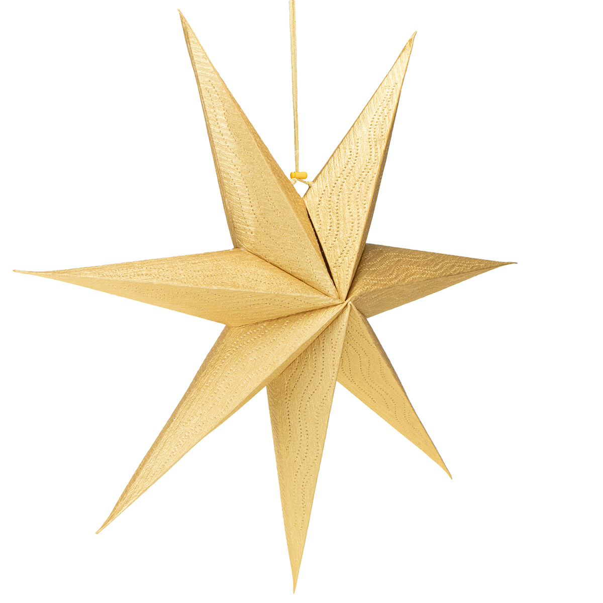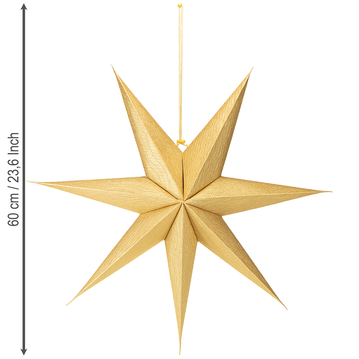 Mit diesem goldenen Papierstern sichern Sie sich ein vielseitiges Dekorationselement, das festliche Eleganz und hohen Qualitätsanspruch vereint. Kommen Sie in den Genuss unserer attraktiven Großhandelspreise und bieten Sie Ihren Kunden ein Highlight, das perfekt ins Weihnachtsambiente passt.