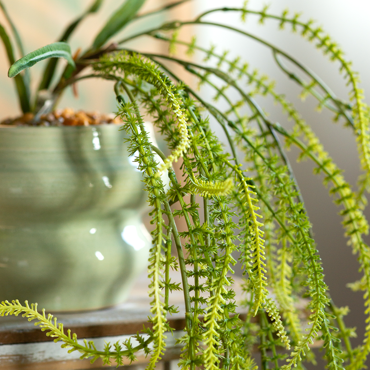 Verleihen Sie Ihren Räumen eine erfrischende Eleganz mit der grünen Borstenhirse! Diese kunstvoll gefertigte Hängepflanze ist ideal für Floristen, Eventplaner und Dekorateure, die stilvolle Raumakzente setzen möchten. Mit 114 cm Länge und einer täuschend echten Optik schafft diese hochwertige Dekopflanze eine einladende Atmosphäre, die ohne Pflegeaufwand auskommt.