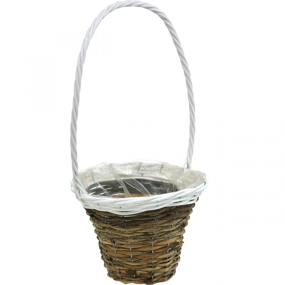 Henkelkorb, Naturkorb zum Bepflanzen, Blumenkorb rund Natur, Weiß H49cm Ø23,5cm