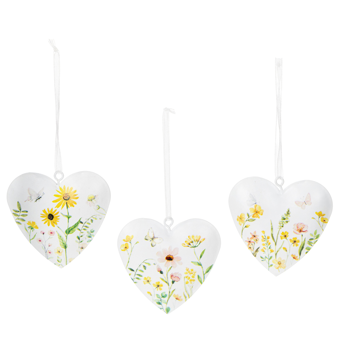 Die herzförmigen Metallanhänger vereinen klassische Eleganz mit einer Prise Landhauscharme. Die dezenten Blumendetails fügen sich perfekt in stilvolle Deko-Konzepte, sei es in einer Empfangshalle oder einem Ladenlokal. Die leicht glänzende weiße Oberfläche ergänzt moderne und traditionelle Elemente gleichermaßen und sorgt für einen zeitlosen Look.