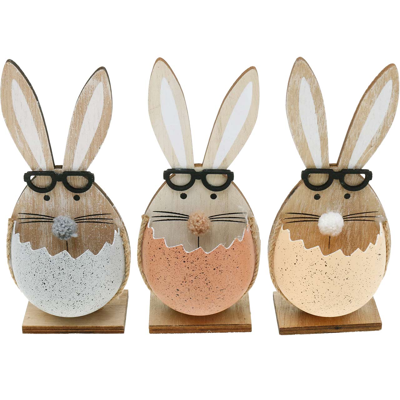 Produktname: Holz-Hase im Ei, Frühlingsdeko, Hasen mit Brille, Osterhasen 3St