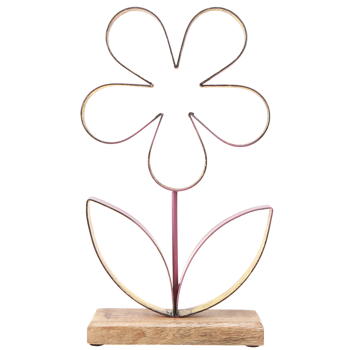Holz Metall Deko Blume Altrosa Gold auf Sockel H35cm Vintage Design