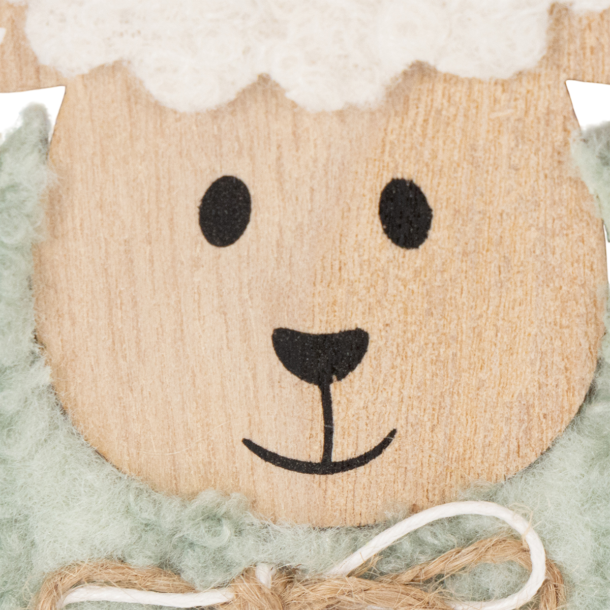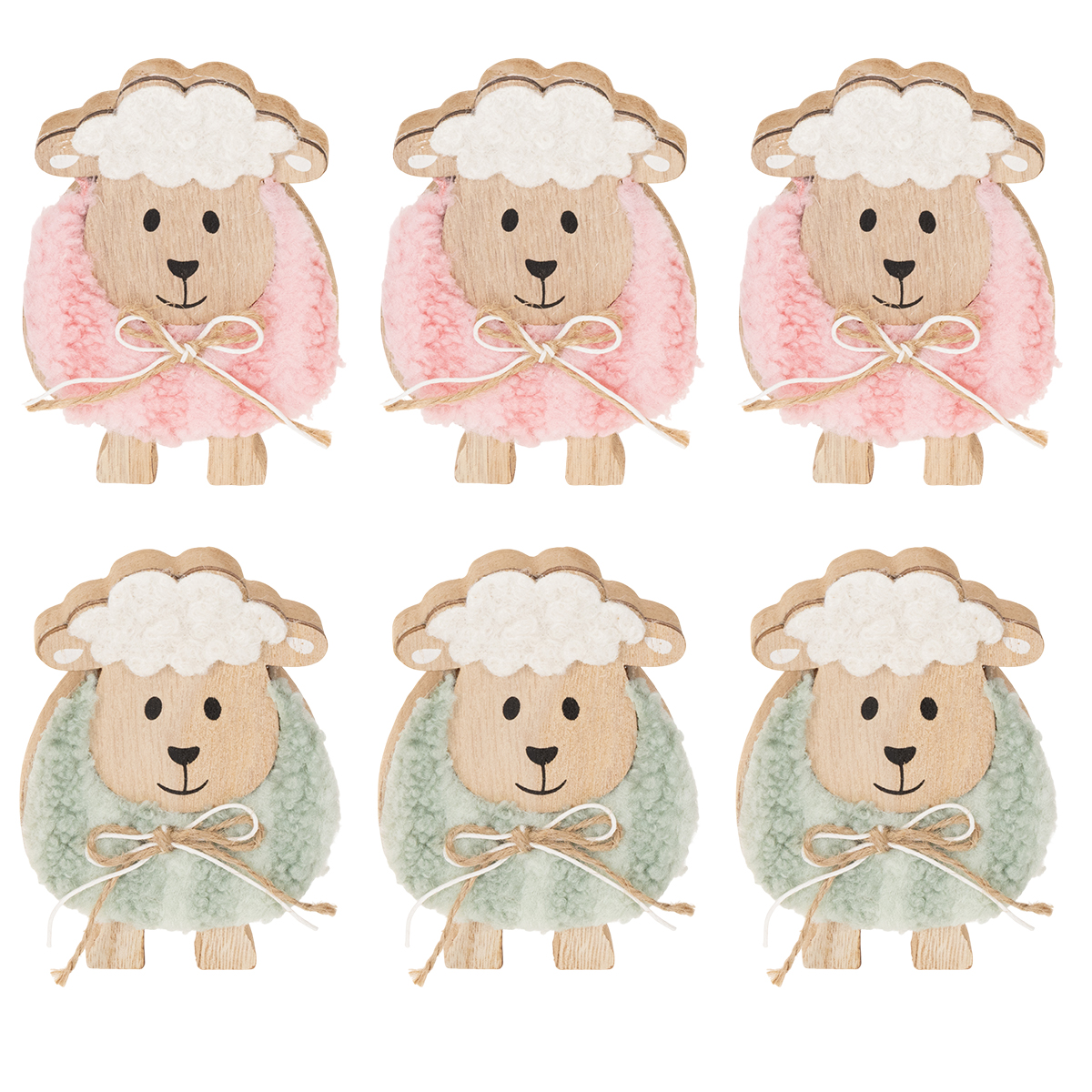 Produktname: Holz Schafe Deko 11cm Rosa und Grün 6er Set für Ostern und Frühling