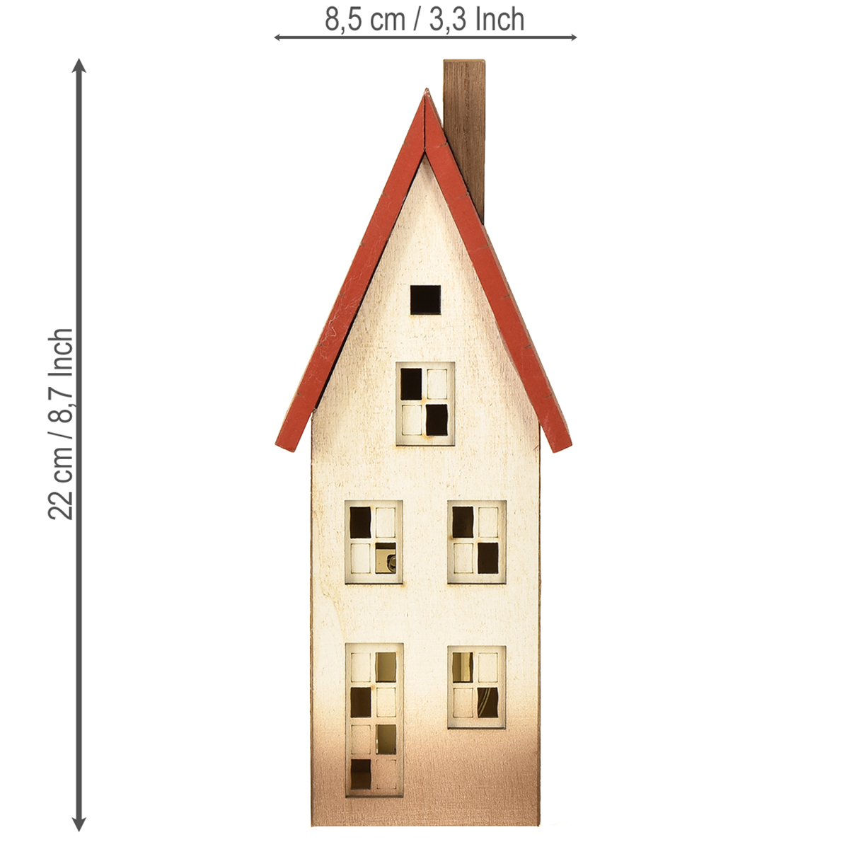 Produktname: Lichthaus Holz Natur Rot für Weihnachtsdeko mit Batterie 8,5×6,5×22cm