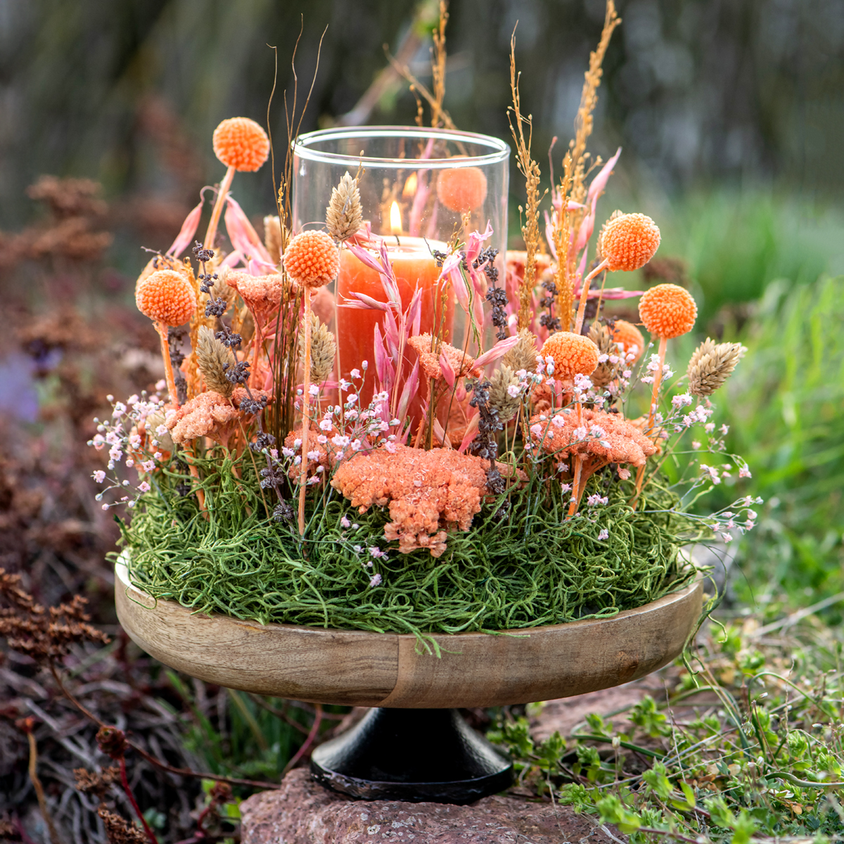 Ergänzen Sie die Holzschale mit künstlichen Pflanzen, saisonalen Dekoartikeln oder stilvollen Kerzenhaltern aus unserem Sortiment bei Floristik21 für ein harmonisches Gesamtbild.